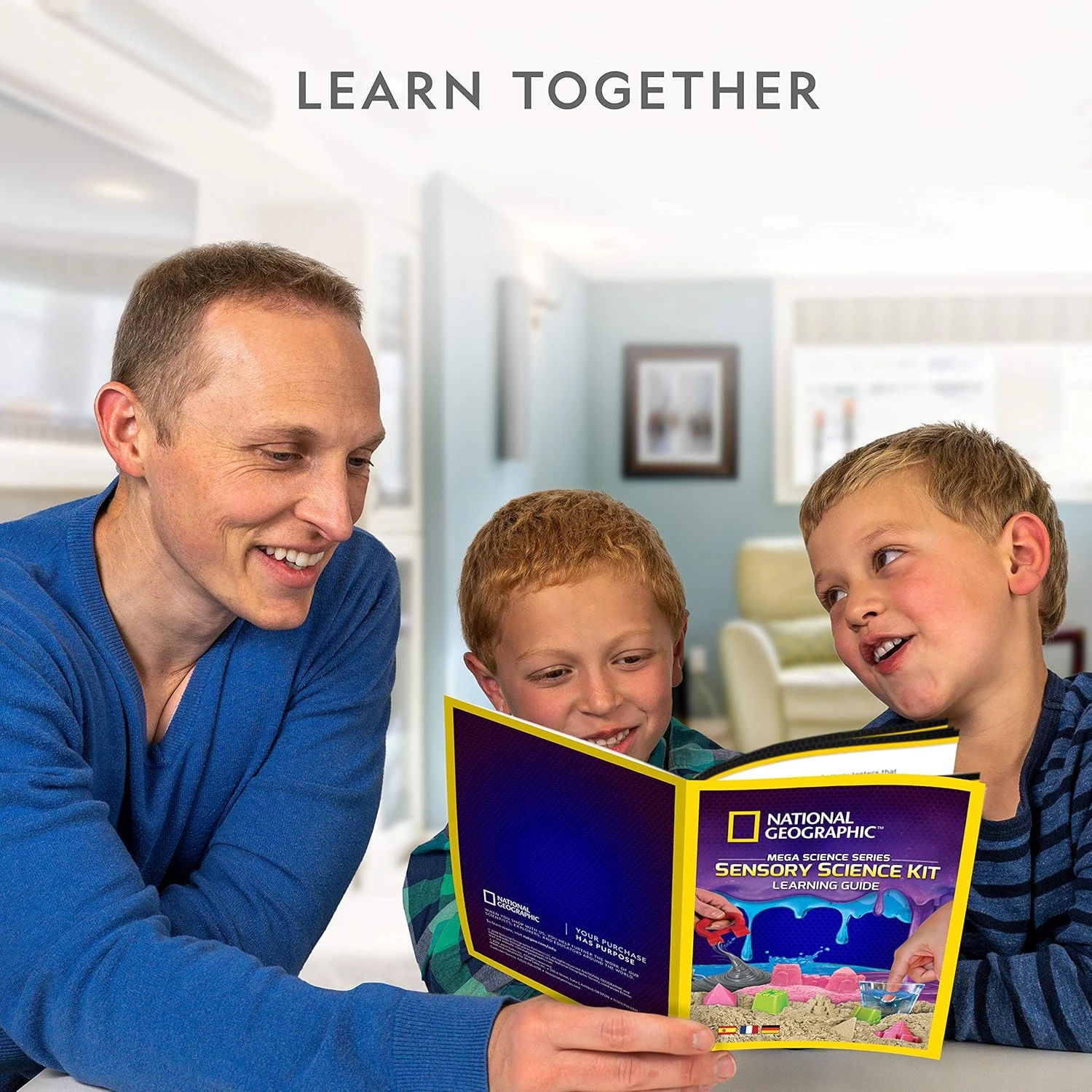 Перед вами универсальный набор с более чем 12 потрясающими занятиями и шестью видами слайма, пластилина и кинетического песка. Исследуйте мир сенсорной науки с этим удивительным научным набором.