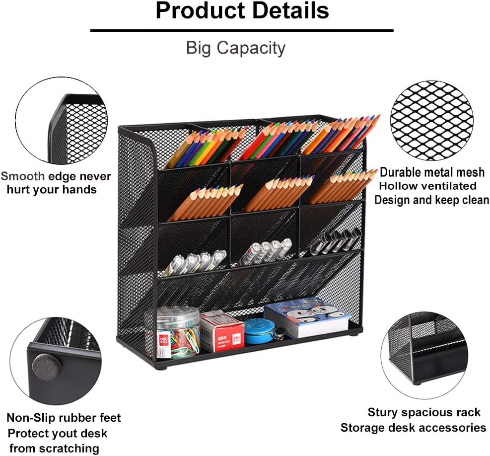 Подставка для ручек изготовлена из прочной металлической сетки, имеет прочную металлическую основу. Гладкое покрытие ABS в сочетании с закругленными краями делают органайзер привлекательным.