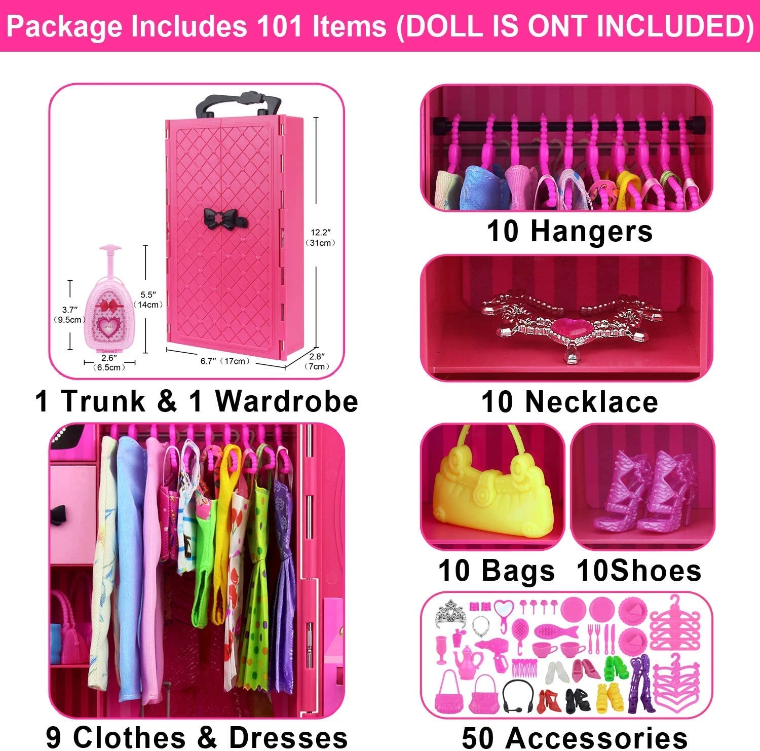 ZITA ELEMENT Doll Closet Wardrobe for 11.5 Inch Girl Doll Clothes and Accessories Storage - Lot 101 Items