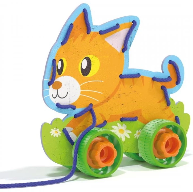 Данная игра предназначена для развития мелкой моторики и воображения. В картонных фигурках животных есть специальные отверстия, в которые необходимо продеть разноцветные шнурки. На основе игрушки есть 4 колеса, когда шнурки будут уже продеты за них можно потянуть и привести фигуру в движение. Комплект выполнен из безопасных качественных материалов. Это уникальный набор, в котором можно не только создавать поделки, но и играть ими в дальнейшем.