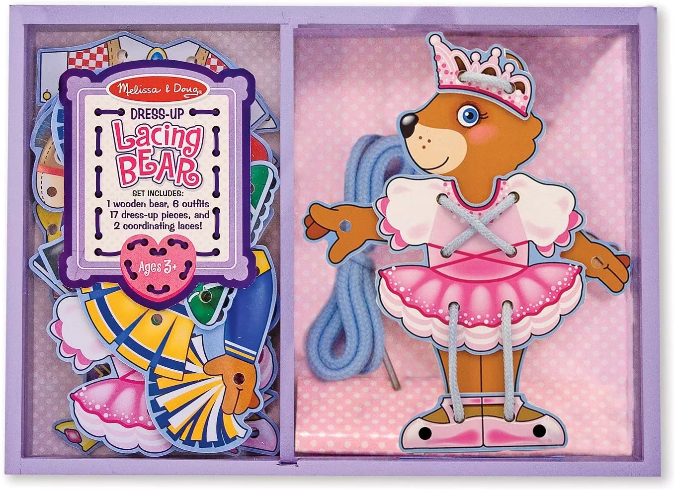 Купила для дочки, чтобы развить мелкую моторику, и очень рада, что выбрала именно эту игрушку. Медведям можно менять наряды, а также продевать шнурки в специальные отверстия. Я добавила несколько цветных шнурков, чтобы было интереснее.