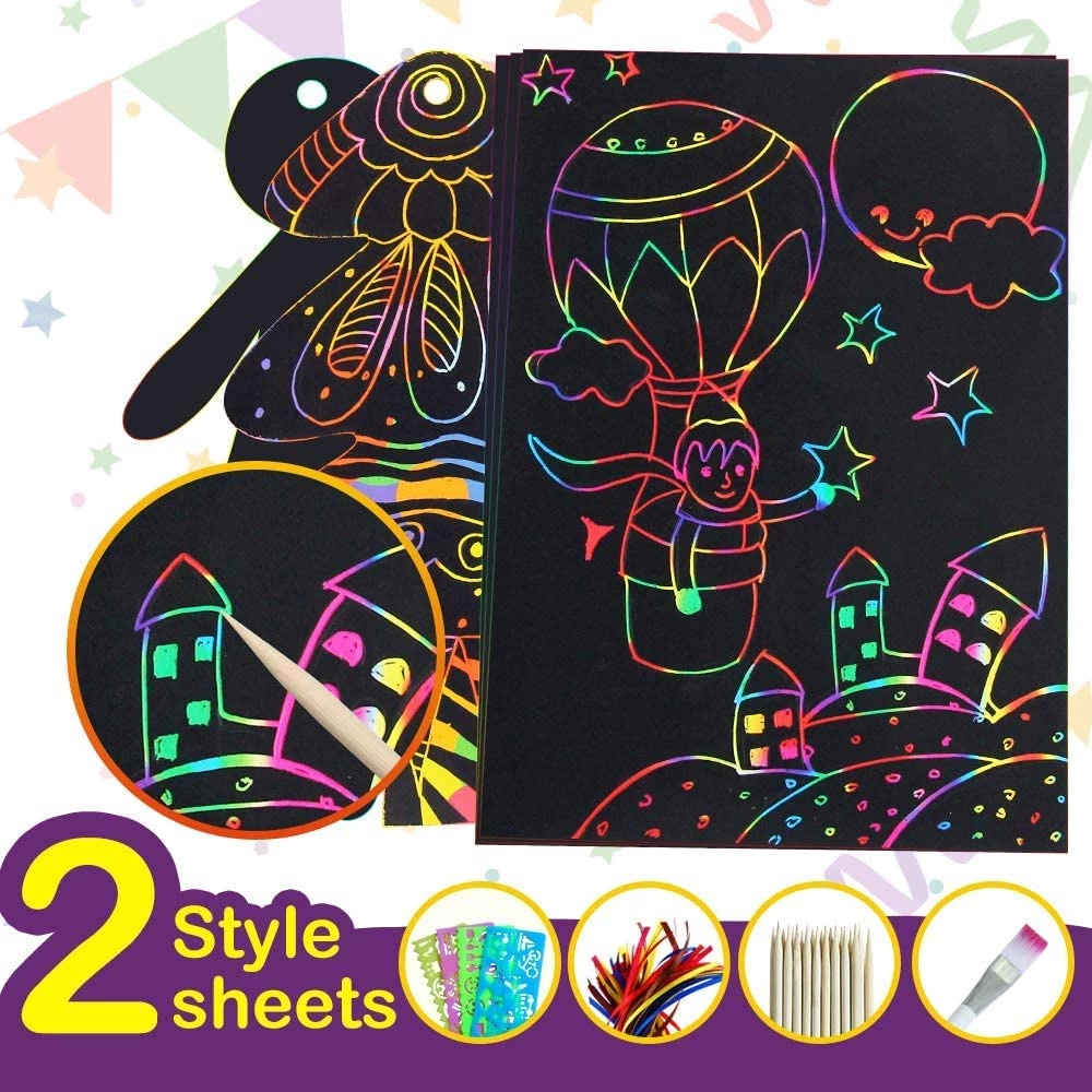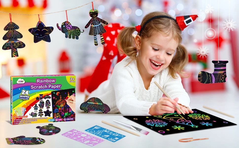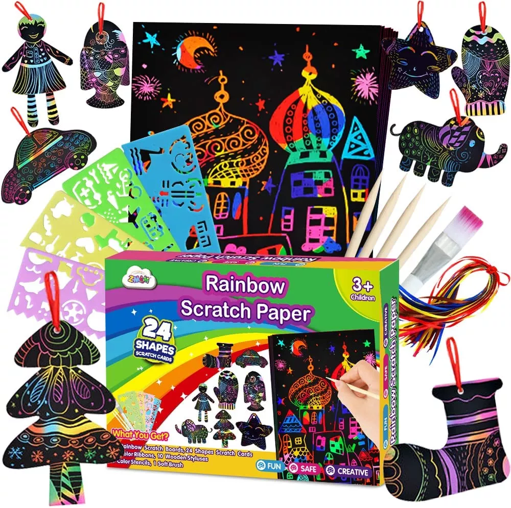 ZMLM Scratch Paper Art Set for Kids Christmas Gift - Rainbow Magic Scratch Off Arts Crafts