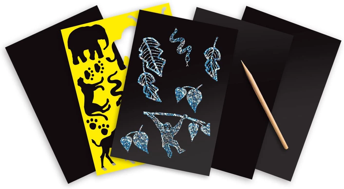 Этот занимательный набор поможет развить у ребенка воображение, креативность и усидчивость. Представлено четыре картины с дикими животными, две из них выполнены в голографических цветах, а две в блестящих. Деревянным стилусом необходимо царапать через трафарет верхнее покрытие, проявляя разноцветную основу. Полученными картинами можно украсить комнату или подарить близкому человеку. Это очень необычный и интересный вариант для творческих занятий.