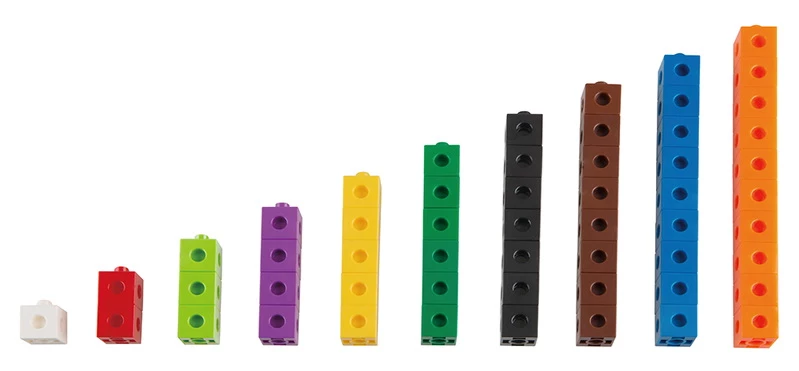 Заниматься математикой с таким набором очень весело и увлекательно. Всего в наборе 100 разноцветных деталей в 10 цветах: красный, желтый, зеленый, оранжевый, коричневый, синий, розовый, белый, черный, серый. Их можно соединять между собой в любой последовательности, изучая сложение и вычитание в пределах 100.
