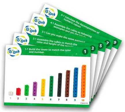 Таким образом, выкладывая кубики разног цвета, ребенок сможет быстро решать примеры. В наборе так же есть карточки с заданиями.