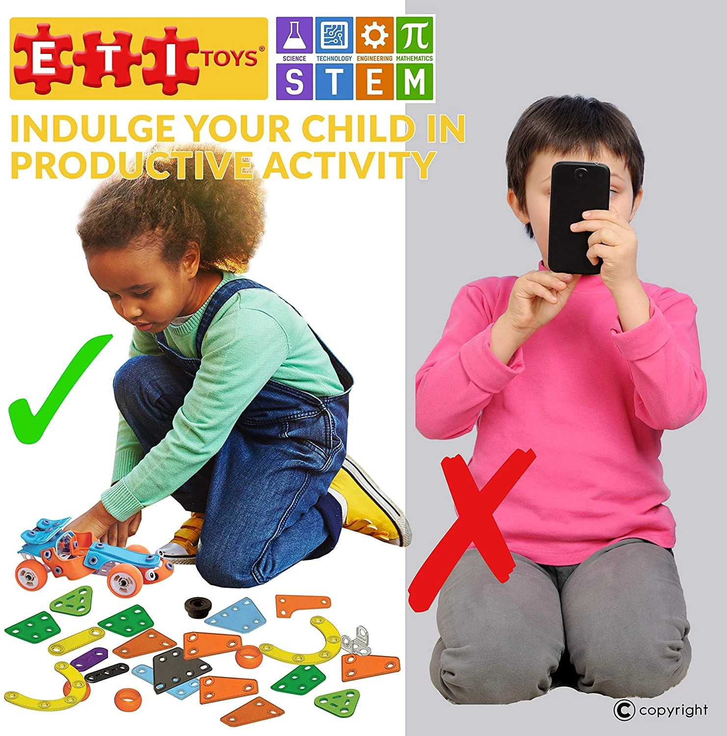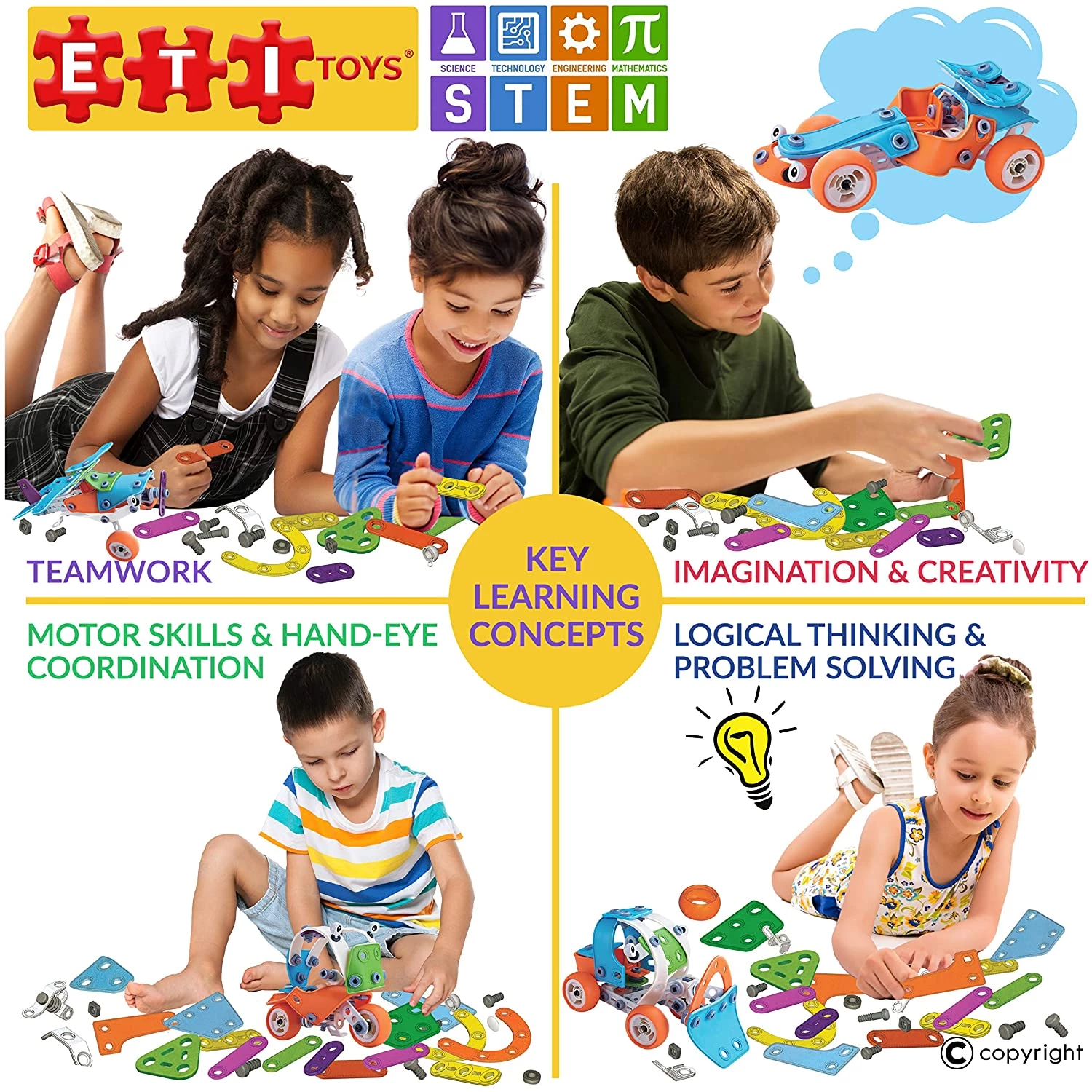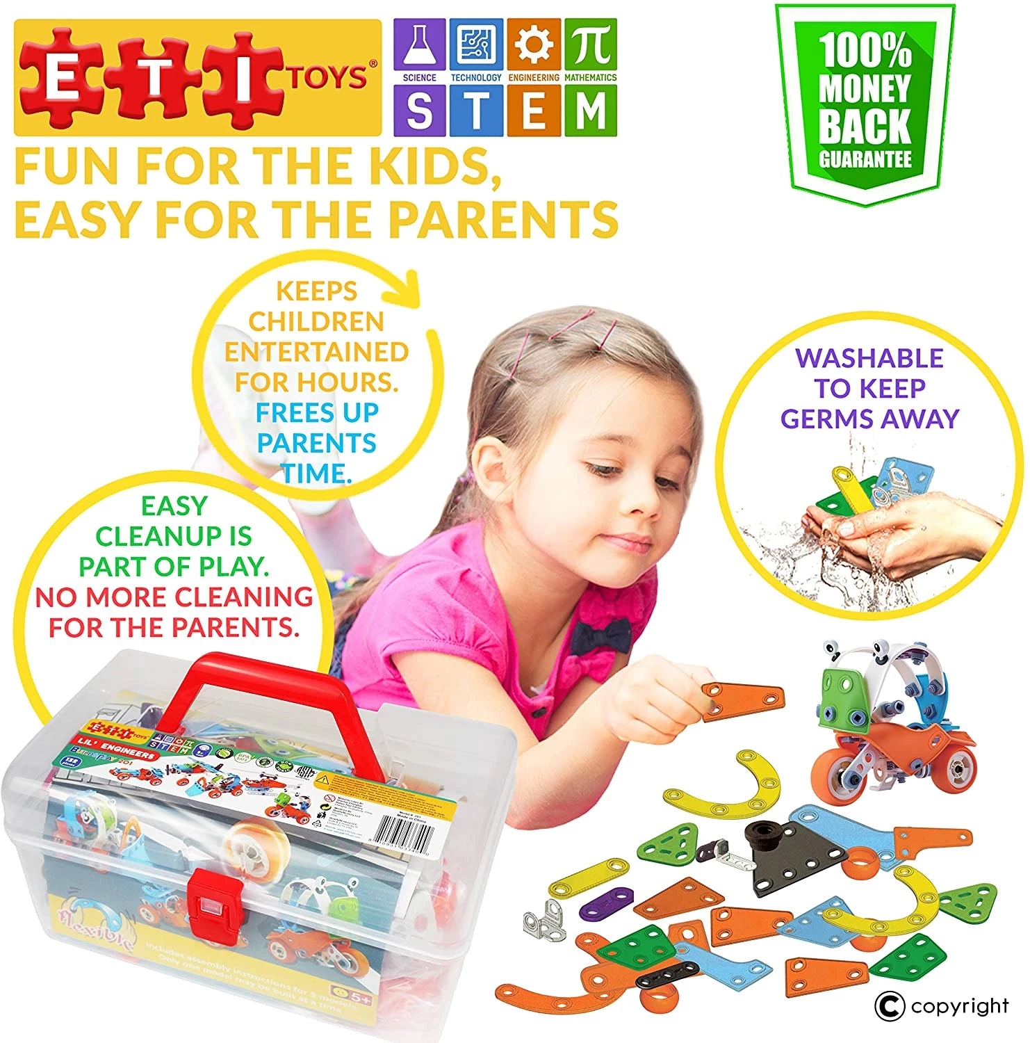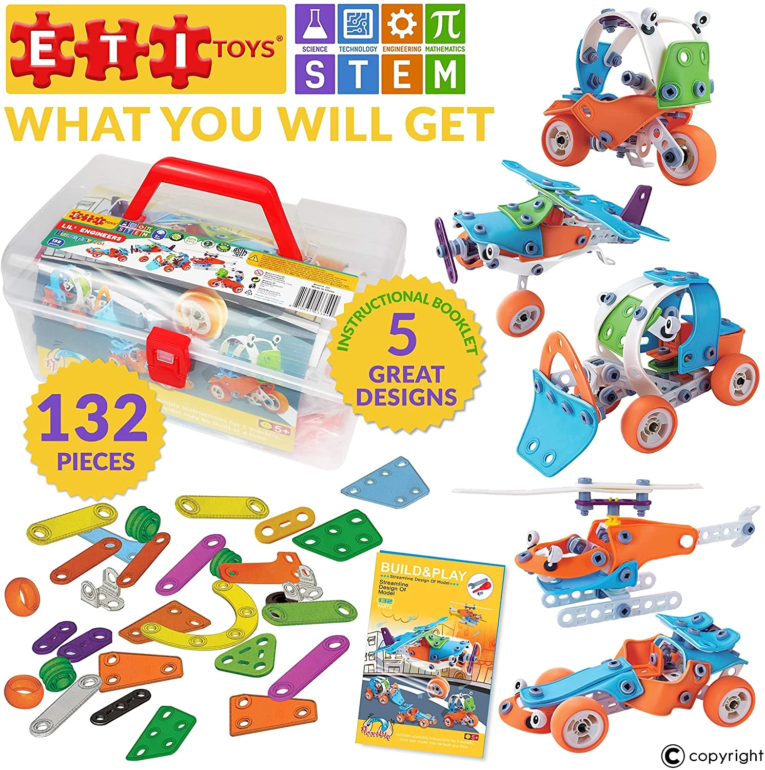 ETI Toys, STEM Learning, 132 Piece Lil Engineers Build & Play 5 Vehicle Building Blocks