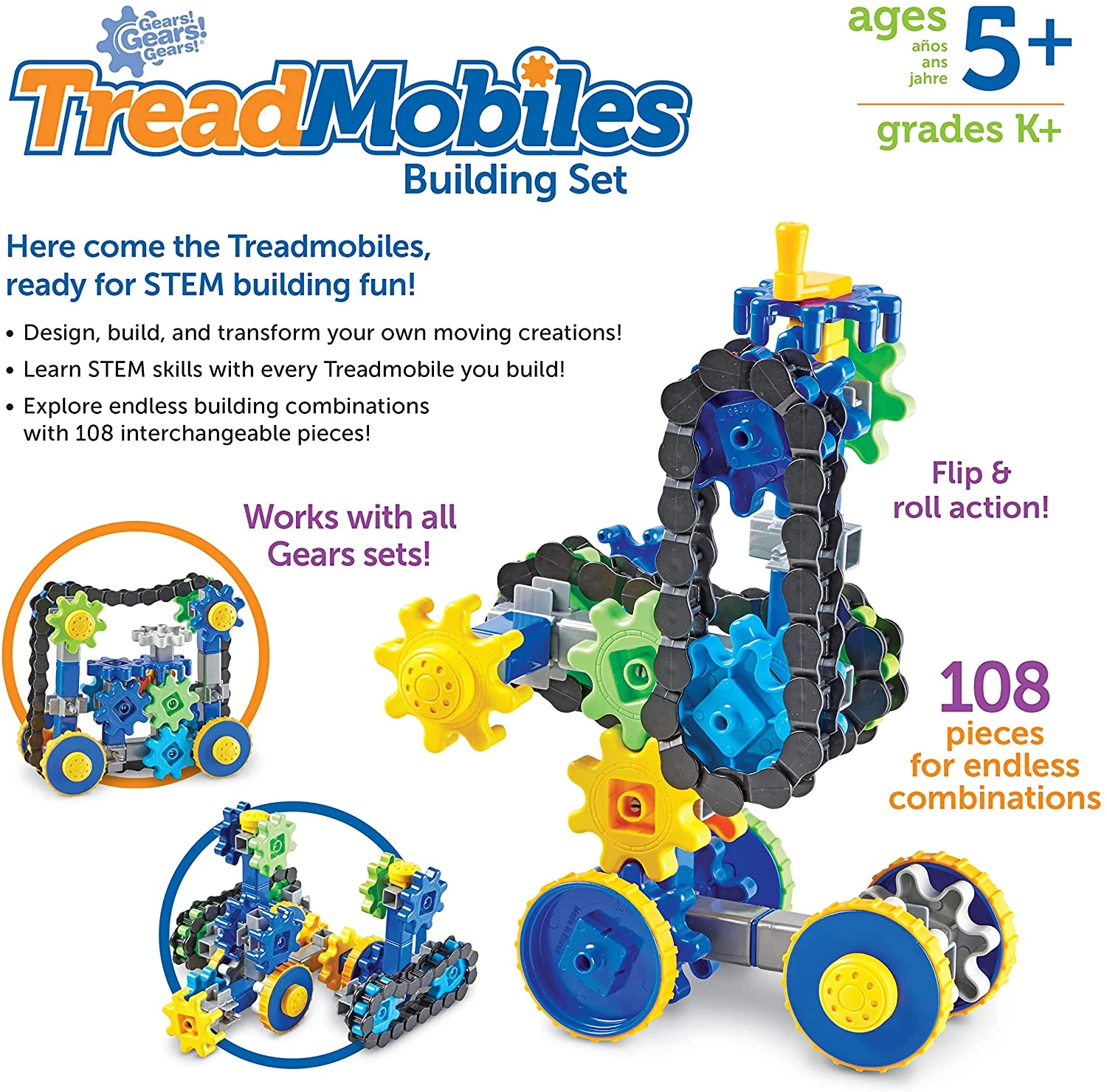 Learning Resources Gears! Gears! Gears! Treadmobiles Building Set,