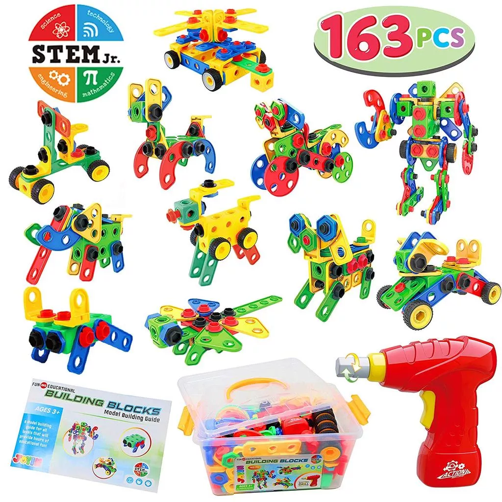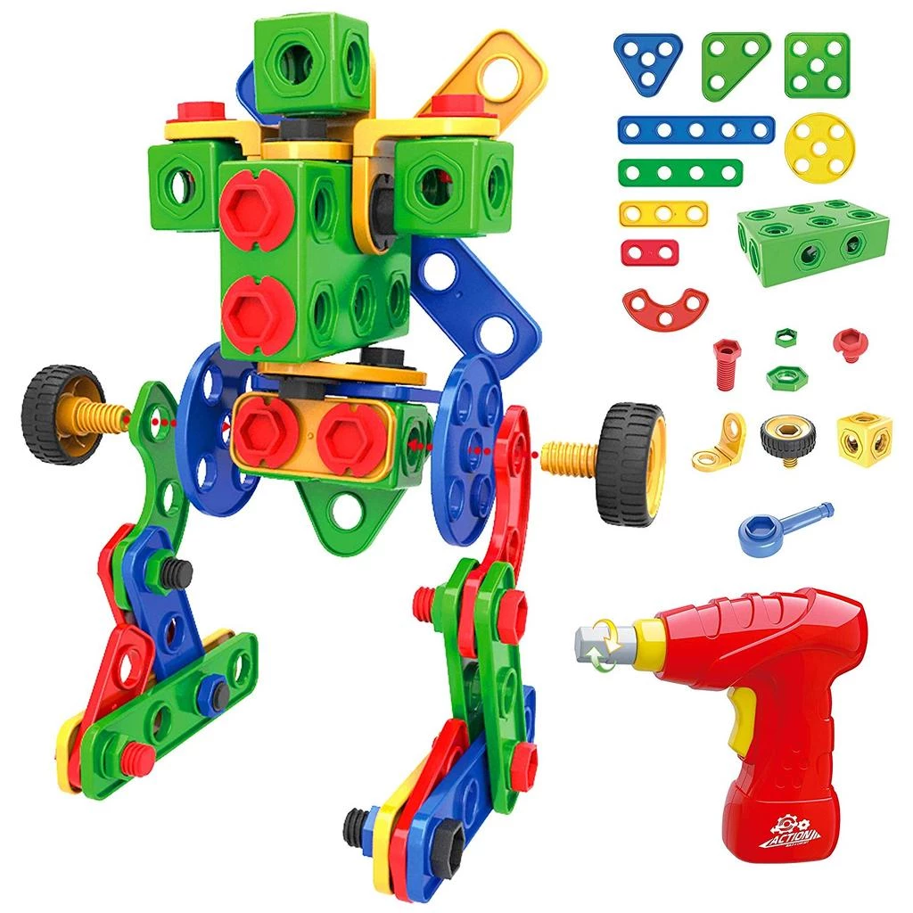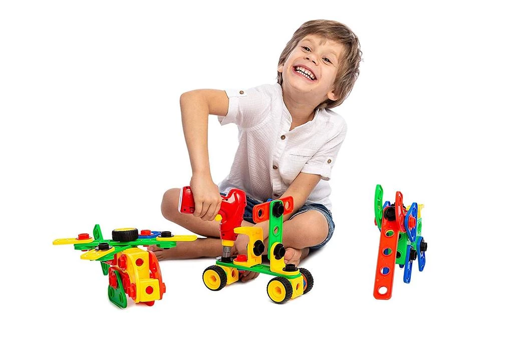 Множество деталей, работающая дрель и удобный ящик для хранения - это именно то, что поможет вашему ребенку проявить фантазию, развивать моторику рук и воображение, самому сделать себе ту игрушку, про которую мечтал. Хорошее качество и приятный дизайн обрадуют родителей прочностью каждой детали из набора. Плюс в наборе есть подробная инструкция, которая предоставит множество вариантов как смастерить робота, машинку, слона и множество других персонажей. Все детали в наборе легко соединяются между собой и крепко держаться, держа конструкцию целой.