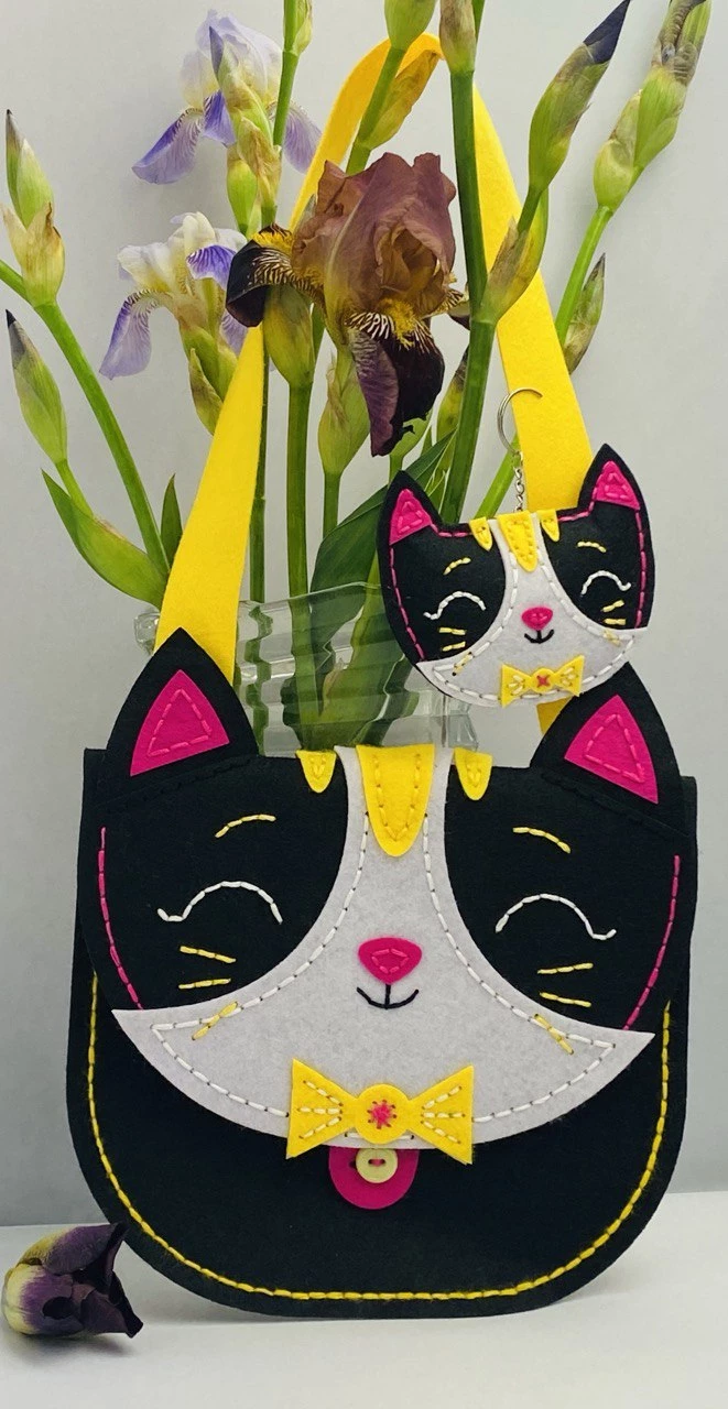 Сшей сам из фетра сумка + брелок « Котик »