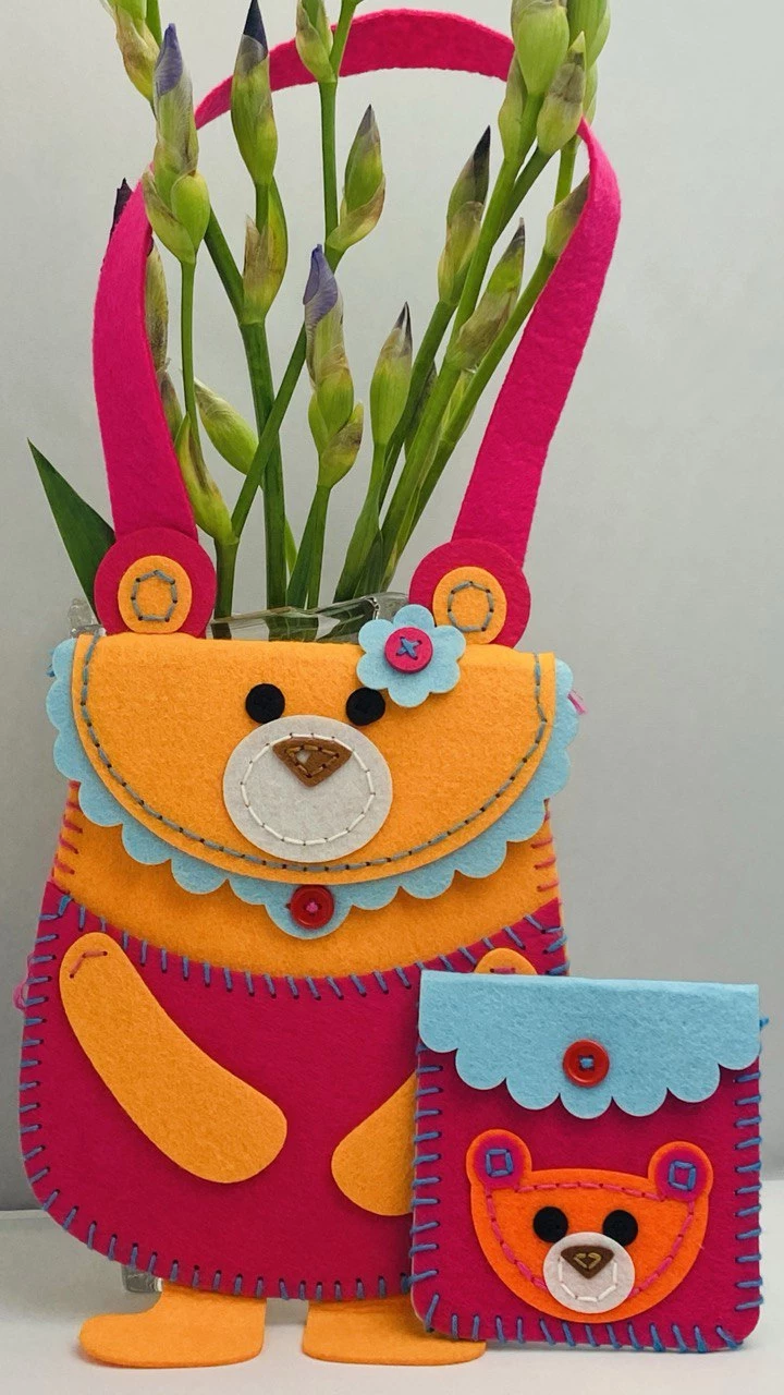 При помощи данного набора у вашей доченьки получится милая сумочка и кошелек из фетра в виде симпатичного медвежонка. Это — отличный вариант для детского творчества.