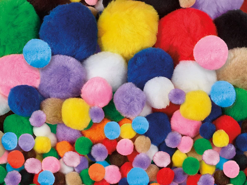 - 100 помпонов разных цветов и размеров.