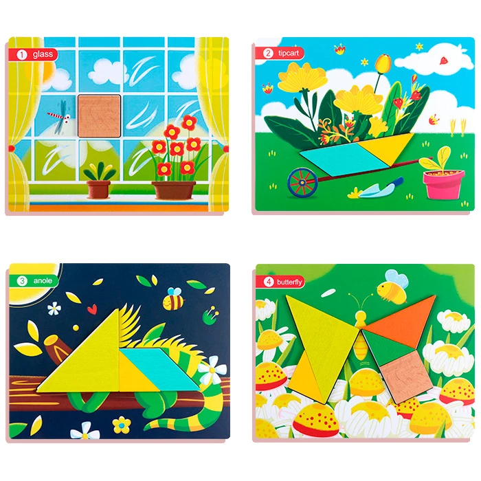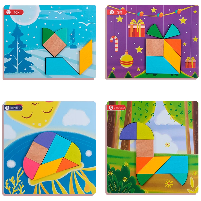 На картах находятся изображения, задача правильно их дополнить деревянными элементами соответствующей формы. Или можно составлять свои комбинации из доступных элементов.