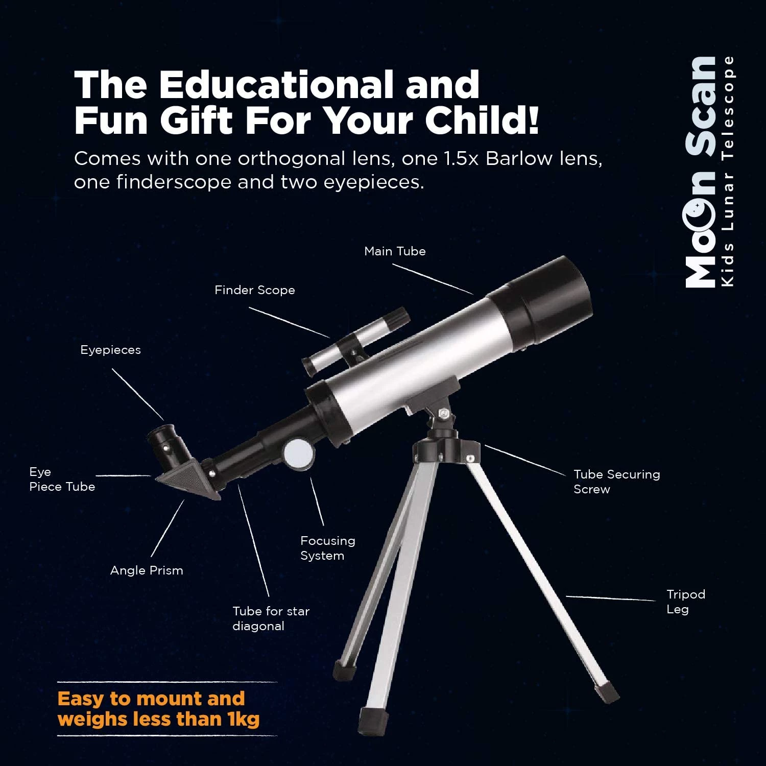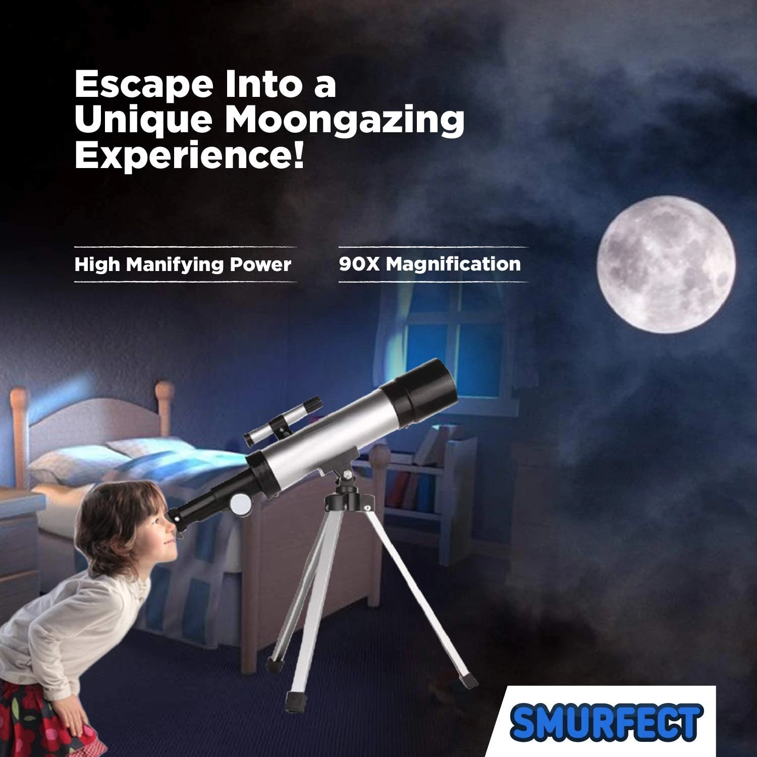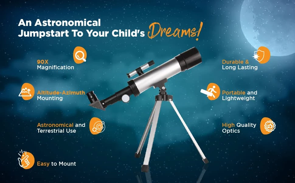 Smurfect Nasa Lunar Telescope for Kids Capable of 90x Magnification, Includes 2 Eyepieces