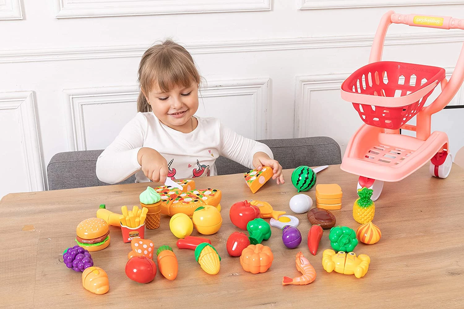 Grocery Store Pretend Play Shopping Cart Food Toy Playset