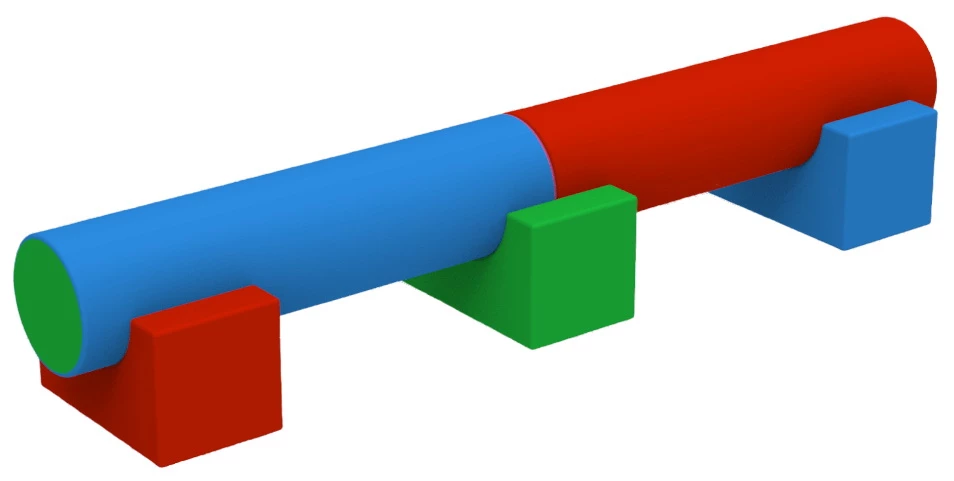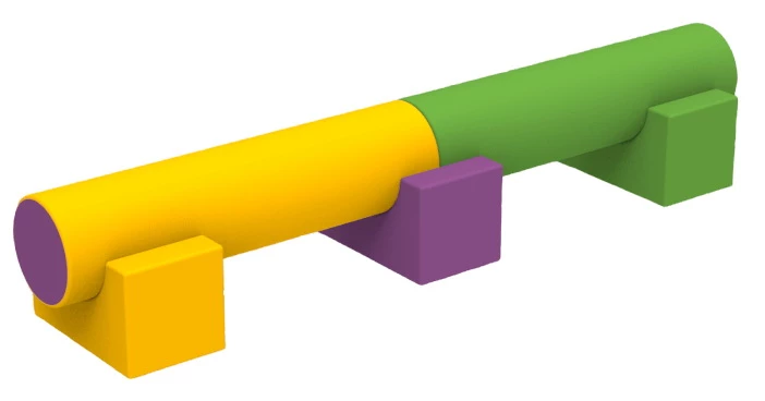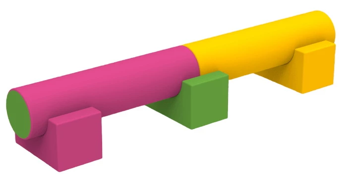 Состоит из 5-и частей: цилиндр (120см х 30см х 30см) – 2шт, подставка (50см х 30см х 30см) – 3шт.