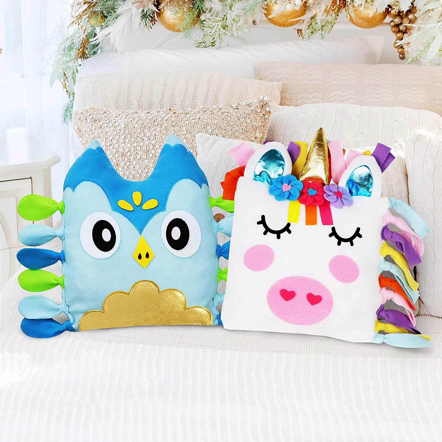 Этот набор для творчества и рукоделия поможет детям развивать мелкую моторику, зрительные и тактильно-сенсорные навыки, при этом весело проводя время, делая свою собственную подушку-единорога или свинку.
