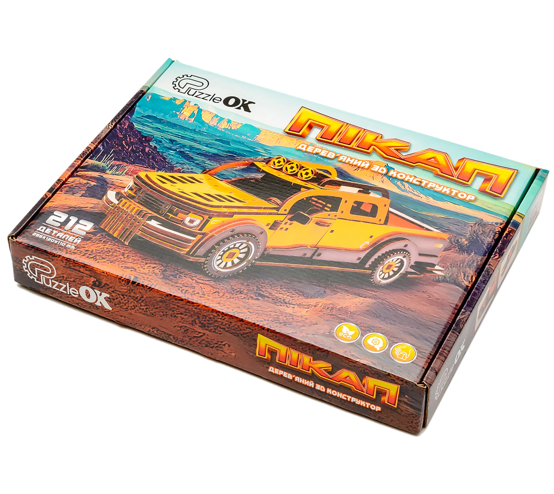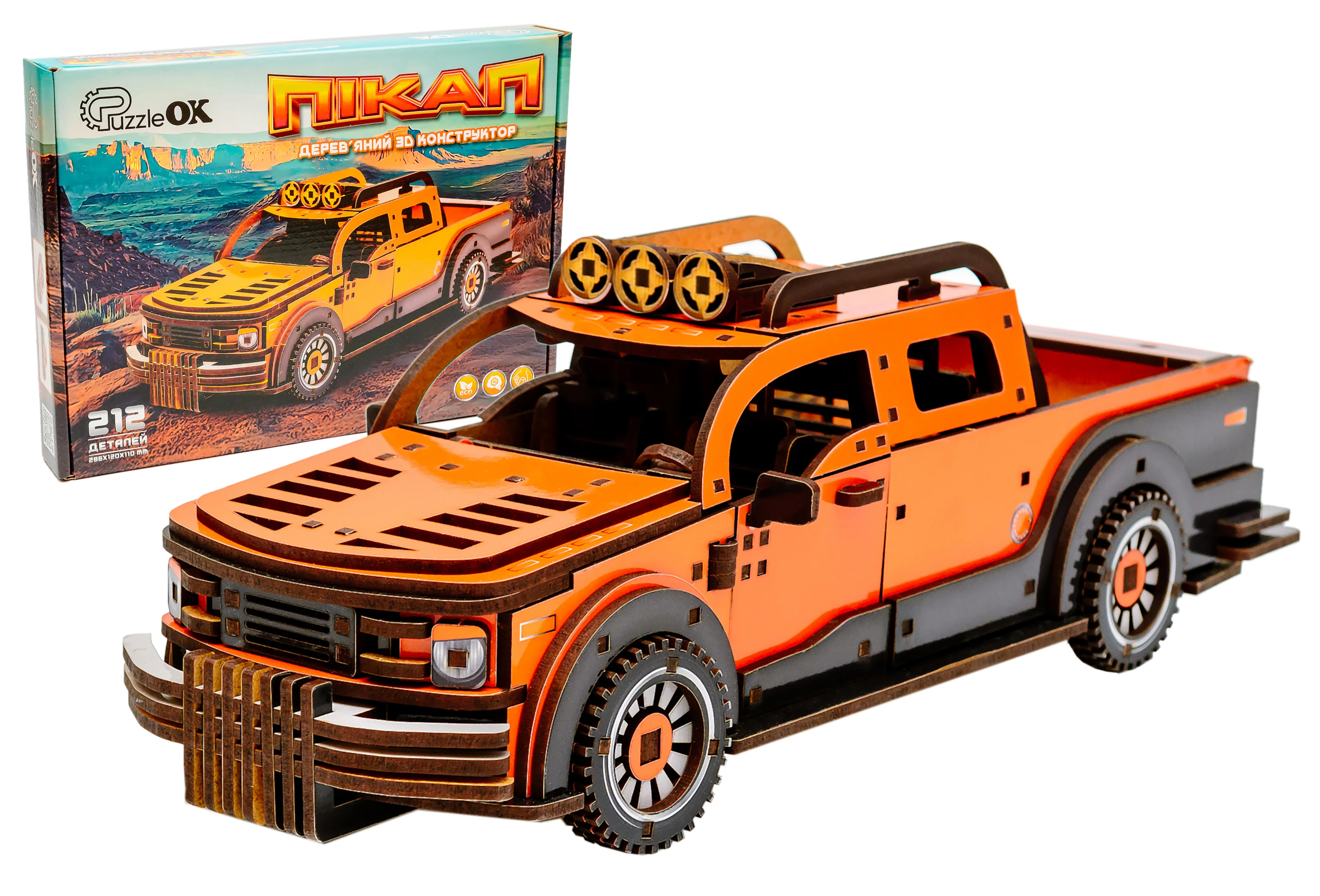 Відео Дерев'яний 3D-конструктор Пікап (212 деталей) від PuzzleOk