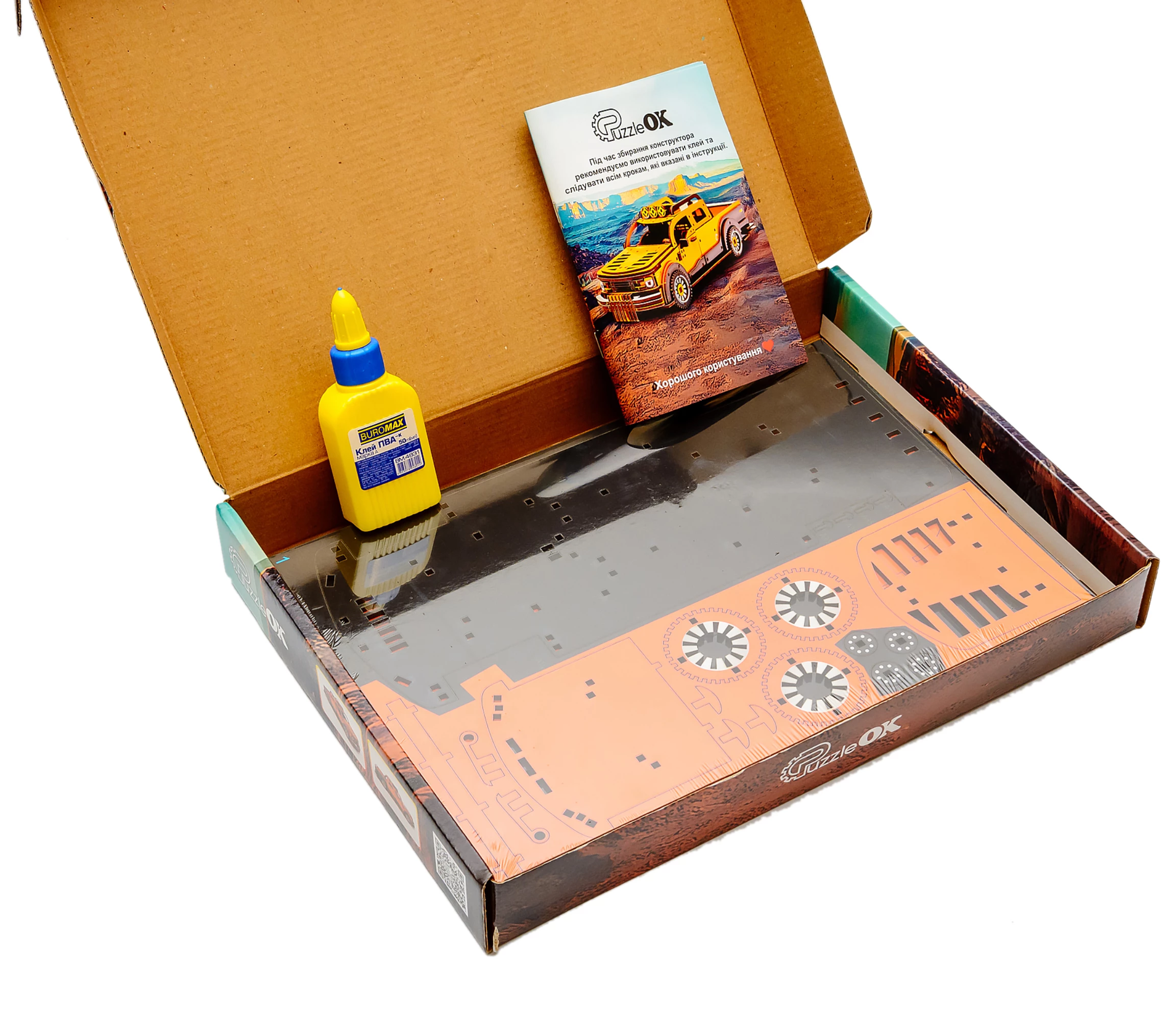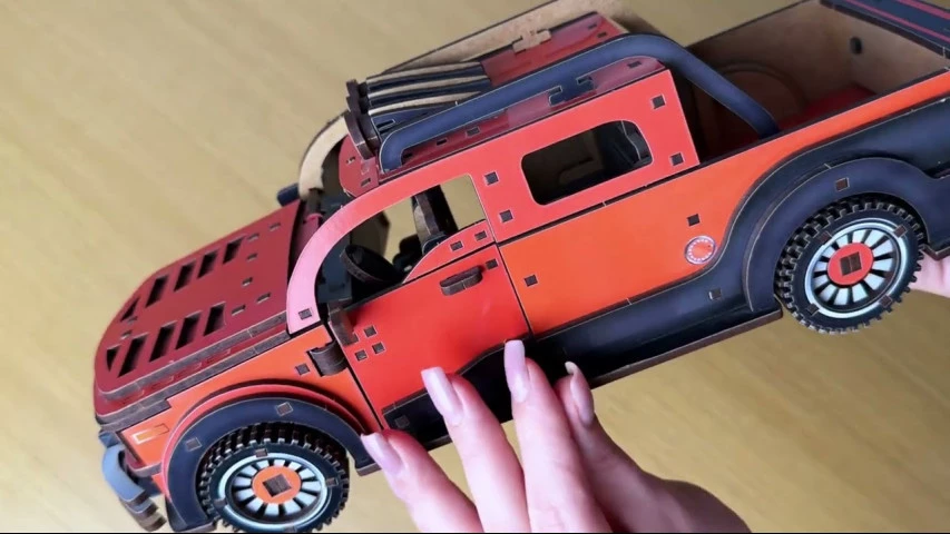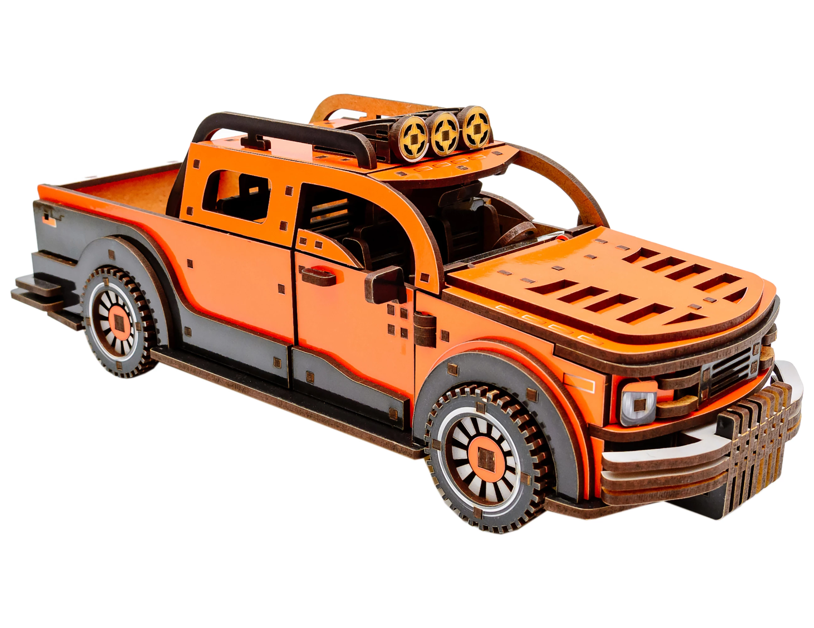 Міцні дерев'яні деталі забезпечують довговічність моделі, що дозволяє їй стати головним героєм дитячих ігор або ефектною прикрасою дитячої кімнати. Відкрийте для своєї дитини радість творчості та дозвольте їй відчути себе справжнім творцем легендарного позашляховика.