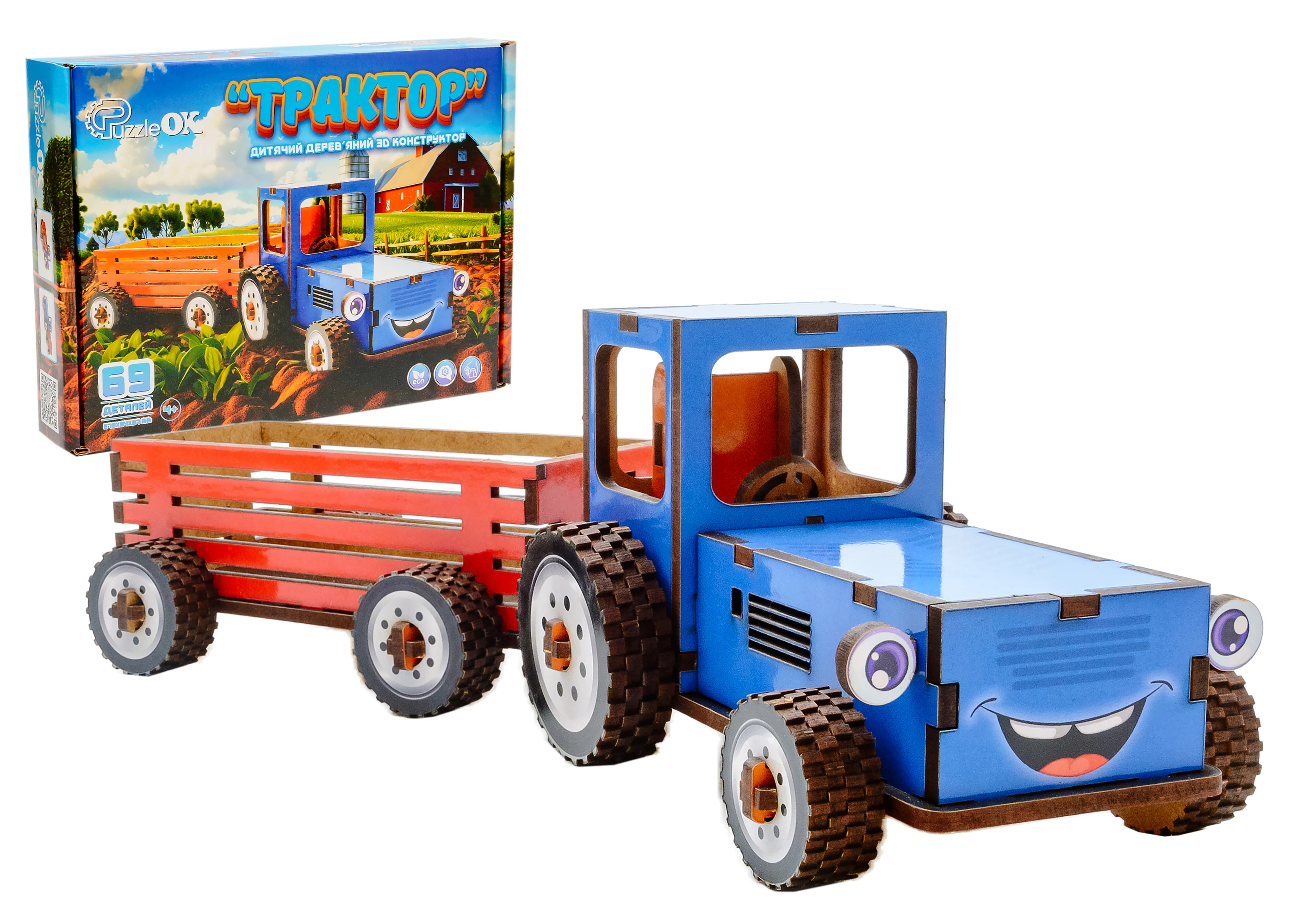 Дитячий дерев'яний 3D конструктор "Трактор"