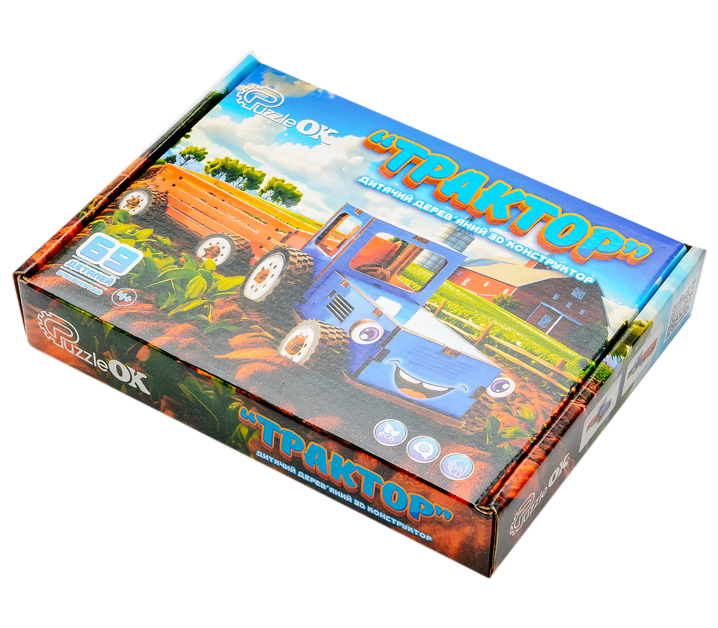 Відео Дерев'яний 3D-конструктор Трактор (69 деталей) від PuzzleOk