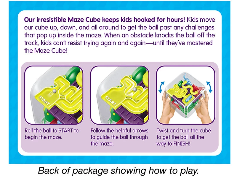 Дитина буде в захваті від цього лабіринту-головоломки, адже для його проходження необхідно буде вчитися балансувати і вміти вчасно повертати! Так, ідея даного куба складається в перекочуванні кульки по звивистих доріжках, через пастки і інші перешкоди - за допомогою повороту самої іграшки! Такі ігри чудово розвивають координацію, логічне мислення, реакцію і багато іншого!