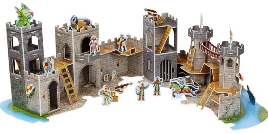 Цікавий 3D пазл призначений для розвитку у дітей дрібної моторики і координації рухів. Тут є понад 100 деталей зі спіненого матеріалу: тварини, королівські фігури, міст, башточки і т.д. Дитина зможе побудувати великий середньовічний замок і використовувати його в своїх іграх. Є інструкція, дотримуючись якої можна легко зібрати виріб без використання клею і ножиць. Це дуже незвичайний і креативний подарунок на будь-яке свято.