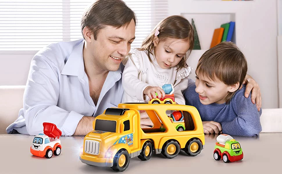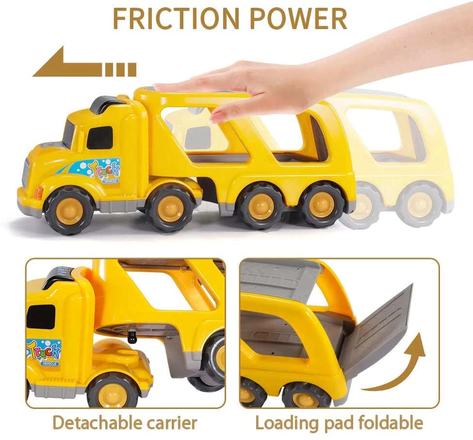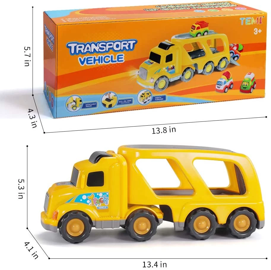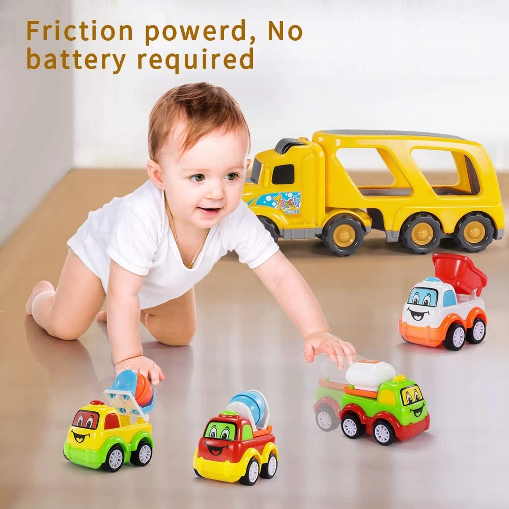 TEMI 5-in-1 Friction Power Toy Vehicle in Carrier Truck, Steering Construction Truck