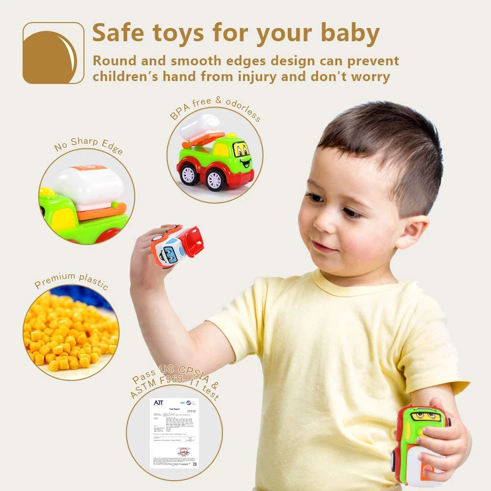 Машинки виготовлені з високоякісного нетоксичного пластика, який відповідає американським стандартам іграшок. Поверхня гладка і не поранить дитячу шкіру. Колеса якісно оброблені, немає кутів, не хвилюйтеся про те, що вони подряпають підлогу. Машинки легко запускати: просто натисніть і відпустіть. Для включення звуків та блимання потрібні 3 батарейки 1,5 В.