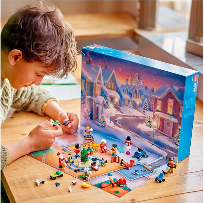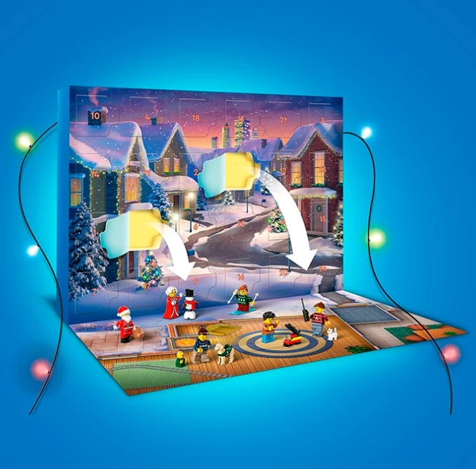 Дуже цікавий адвент календар допоможе весело провести час перед Різдвом. Кожен день потрібно відкривати по одному віконця і знаходити там забавні фігурки від LEGO. Ігрове поле розкривається і перетворюється в невелике містечко, в якому можна грати отриманими іграшками. З незвичайними персонажами легко придумати власну різдвяну історію. Такий календар навчить дитини орієнтуватися в датах і створить святкову атмосферу.