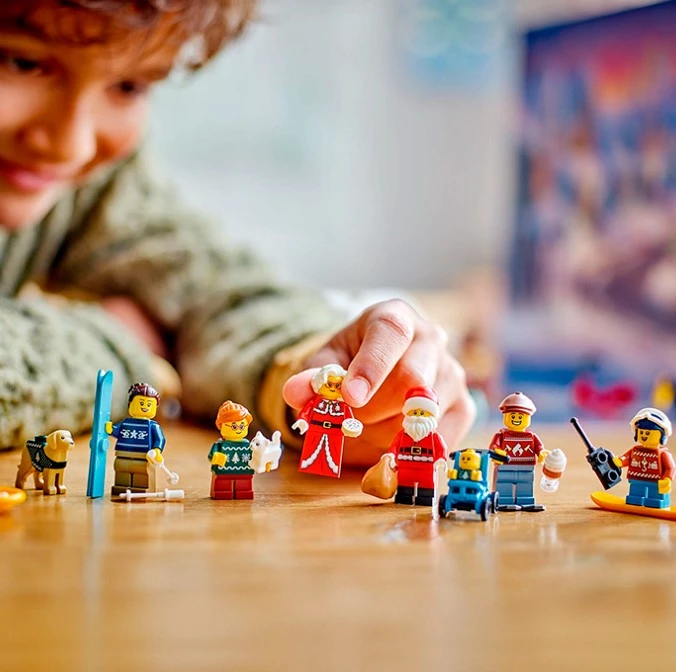 Також входить кумедний ігровий килимок – діти можуть скласти задню частину календаря, щоб створити сцену для творчих пригод у зимовій країні чудес. Різдвяний календар LEGO City - відмінний подарунок для дітей.