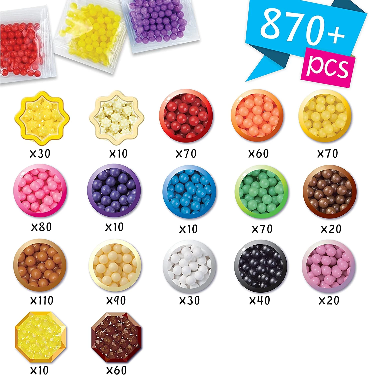- 870 різнокольорових намистин.