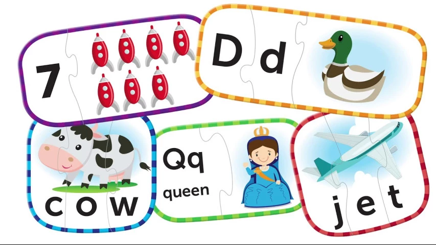Дуже захоплюючий набір для вивчення англійського алфавіту. У комплекті безліч пазлів, які необхідно правильно поєднати. Цей набір з 26 барвистих головоломок, що складаються з трьох частин. Кожна буква має написання в верхньому і нижньому регістрі, а також зображення тварини, назва якого починається на неї. Дитині потрібно зібрати всі три елементи разом, щоб отримати повноцінну картинку. Діти вивчають не тільки букви, їх правопис, а й різноманітних тварин.