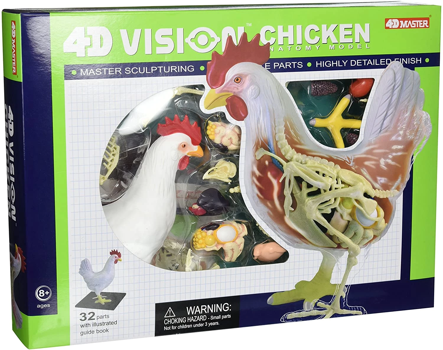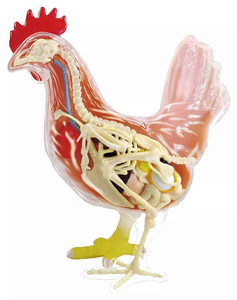 Дізнайтеся про анатомію курки за допомогою цієї веселої 4D-головоломки! Модель має прозорий виріз для демонстрації внутрішніх органів і будови. Дозволяє переглядати органи і кістки. Включає платформу дисплея. Деталі розписані вручну для додання реалізму. Включає ілюстрований буклет.