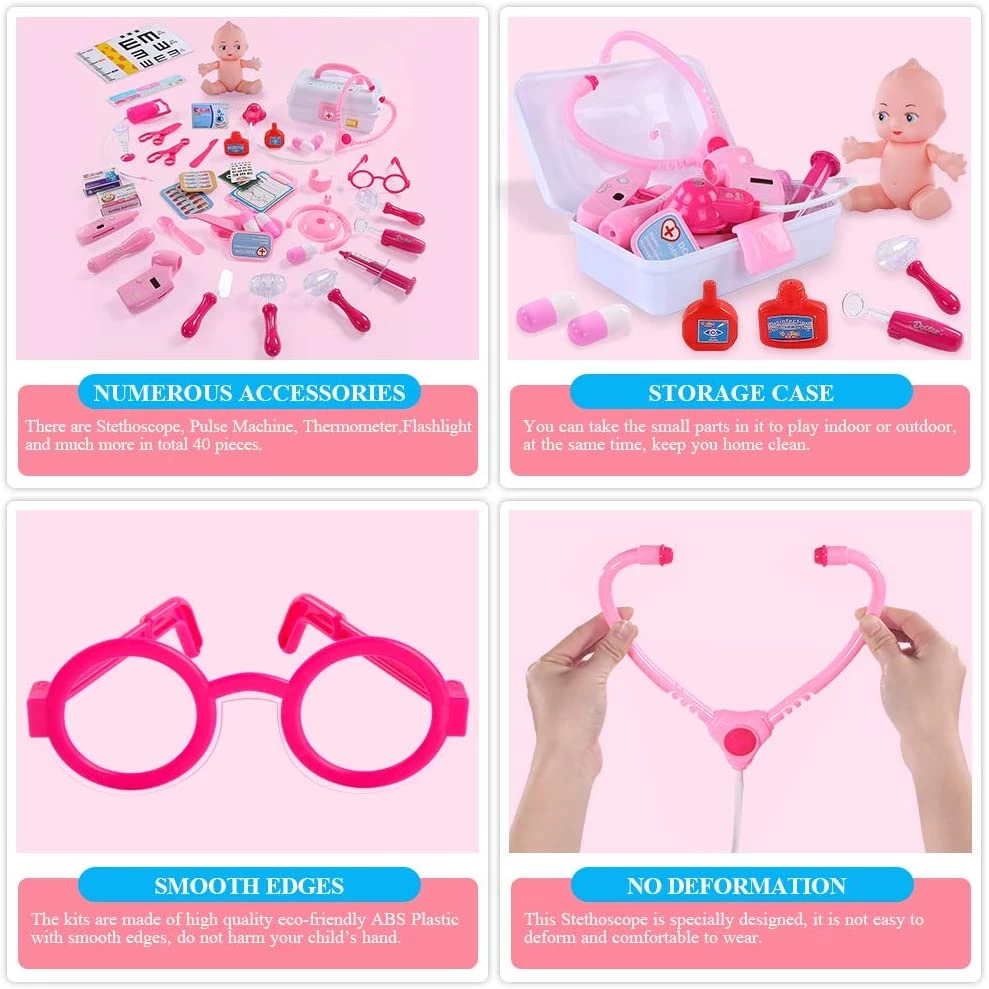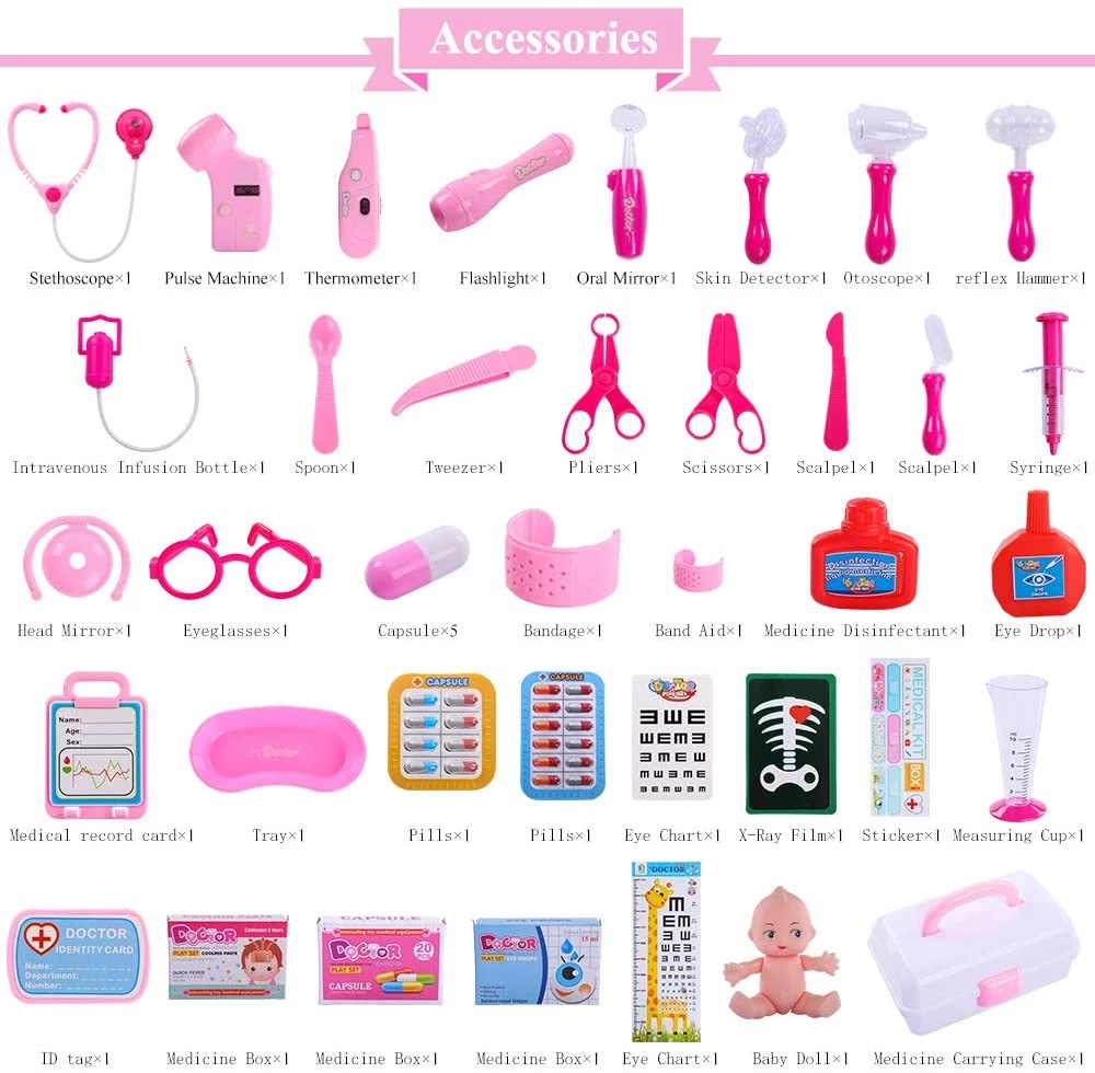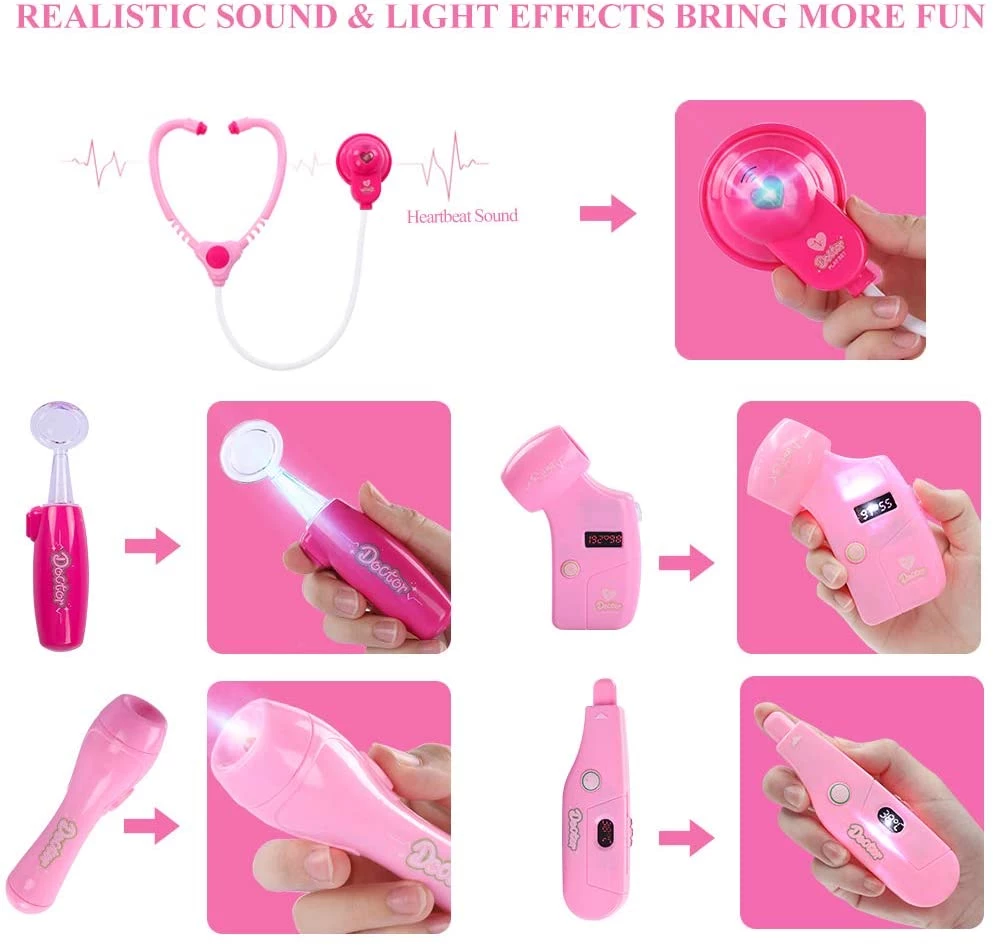 Цей розвиваючий набір ідеально підійде для гри в лікаря і пацієнта. У ньому є всі необхідні елементи, можна "лікувати" як живу людину, так і маленького пупса. За допомогою набору можна перевірити зір, рефлекси, виміряти зріст і температуру, провести операцію, зробити рентген, укол, кардіограму, призначити лікування і багато іншого. Маленькому лікарю потрібно обов'язково надіти окуляри, що йдуть в наборі, щоб створити повноцінний образ. У цю гру можна грати як з батьками, так і з друзями.