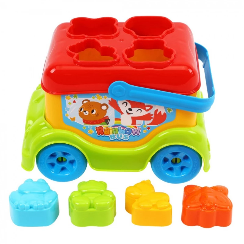 Сортер «Автобус» буде чудовим подарунком для малюків від одного року. Ця іграшка успішно поєднує у собі навчальні та ігрові функції. У комплект входить автобус, а також 4 фігурки тварин. У даху автобуса є отвори для сортування. Гра з цим набором сприяє розвитку мислення та координації рухів.