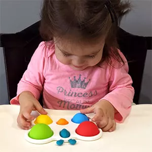Розвиває тактильні відчуття і дрібну моторику рук. Більш дорослі діти можуть використовувати іграшку як антистресу. Також підходить для дорослих. Натискайте бульбашки іграшки знову і знову, коли ви нервуєте, вам нудно і потрібно вбити час. Особливо актуально під час роздумів.
