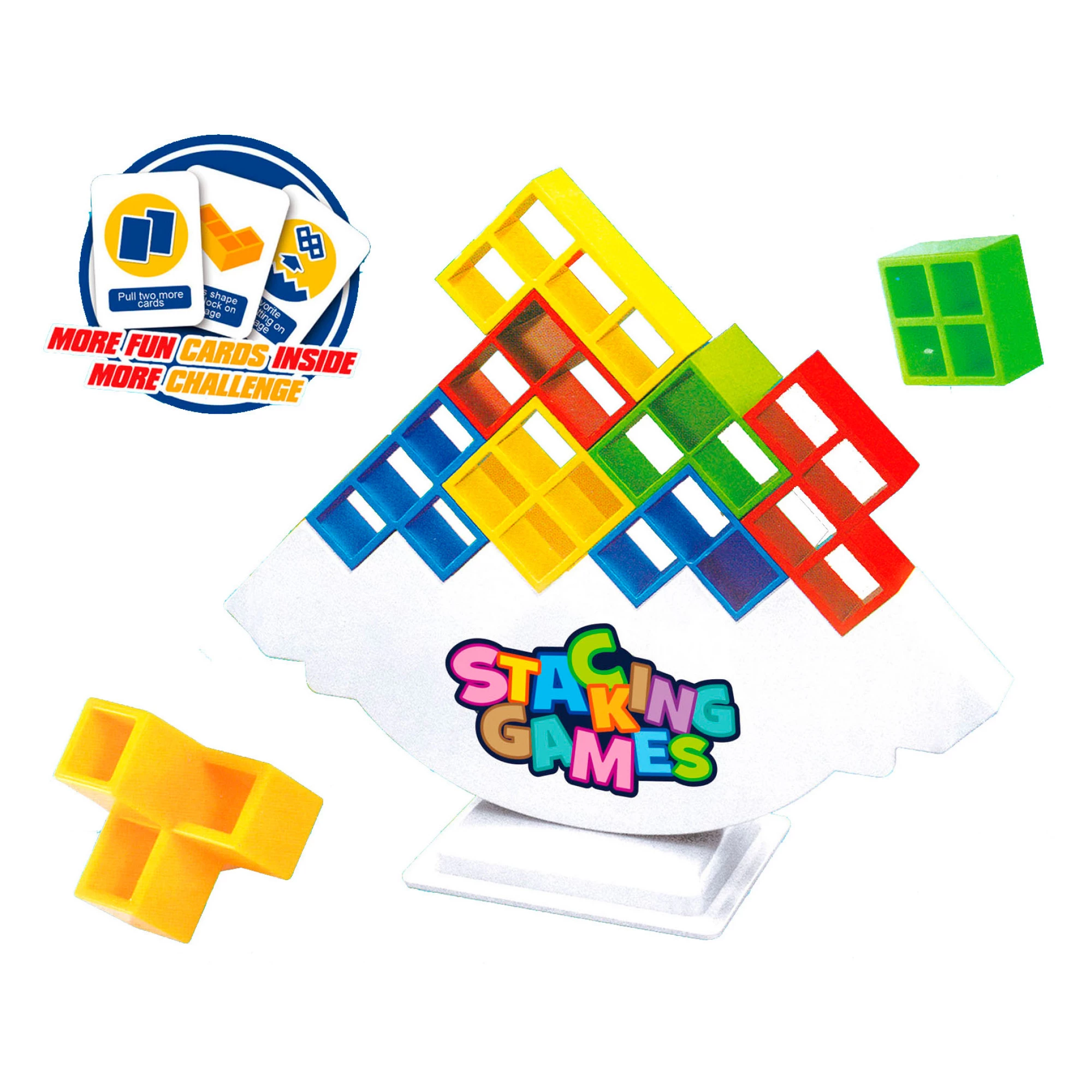 Ця захоплива гра для всієї родини — не просто забава, а путівник світом яскравих кольорів та корисних навичок. У процесі гри дитина не тільки будуватиме вежі, а й тренуватиме ключові вміння та навички. Гра сприяє розвитку розумових здібностей, концентрації та терпіння. І все це в яскравій та вельми оригінальній формі! Неважливо, чи збираєтеся ви грати наодинці або в компанії, кожна ваша дія в процесі гри буде приносити вам радість та задоволення. Розміщуйте, закріплюйте та балансуйте деталі на рухомій платформі, намагаючись утримати рівновагу.