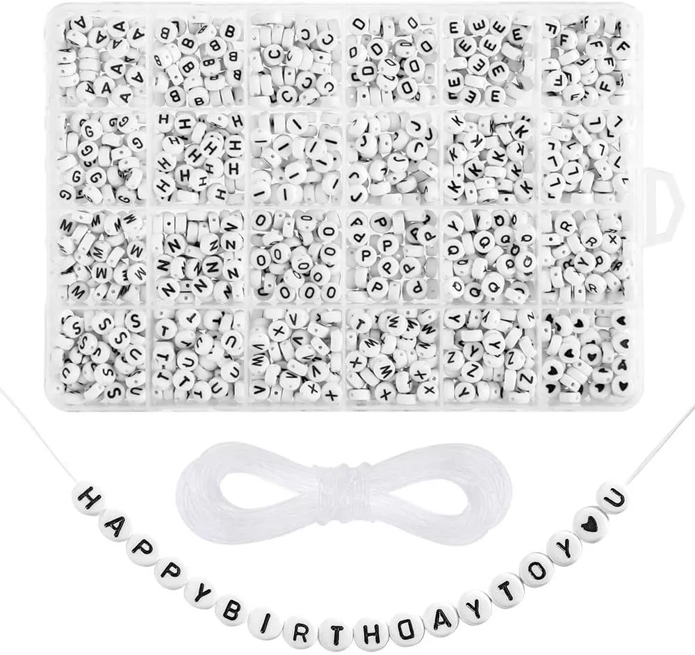 Набір з 1620 бусинок призначений для створення оригінальних іменних прикрас. У боксі 24 відділення, кожне з яких займає певна буква алфавіту, а також є рулон спеціальної нитки. Всі намистини виконані в одному лаконічному дизайні, тому їх можна використовувати для різних цілей. Наприклад, створити гарний браслет з власним ім'ям або ж зробити брелок зі своїм прізвищем і повісити на рюкзак. Такий набір відмінно урізноманітнює арсенал юної рукодільниці, розвиває дрібну моторику і допомагає вивчити англійський алфавіт.