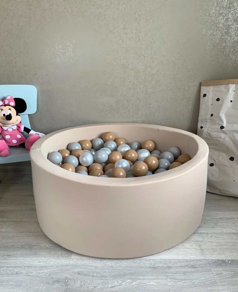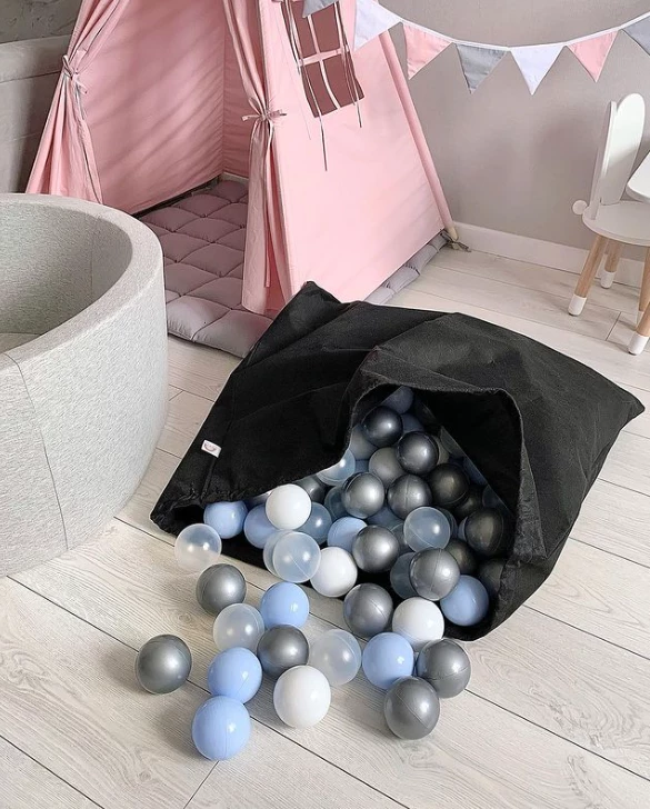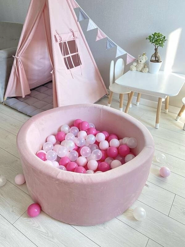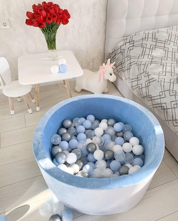 Діти обожнюють сухі басейни, в них можна розслабитися, подуріти, а також вивчити кольору. На дні басейну розташований синтепоновий утеплювач, чохол можна легко зняти і випрати в пральній машині при необхідності. Каркас виготовлений з м'якого меблевого поролону.