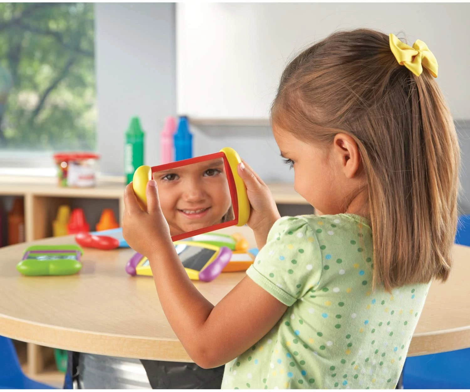 Допоможіть дітям дізнатися все про себе за допомогою зручних двосторонніх дзеркал! Набір з двосторонніх дзеркал, зручних у використанні, відразу приверне увагу дітей. Під час гри, діти навчаються усвідомленню тіла, емоцій, мови і багато чому іншому.