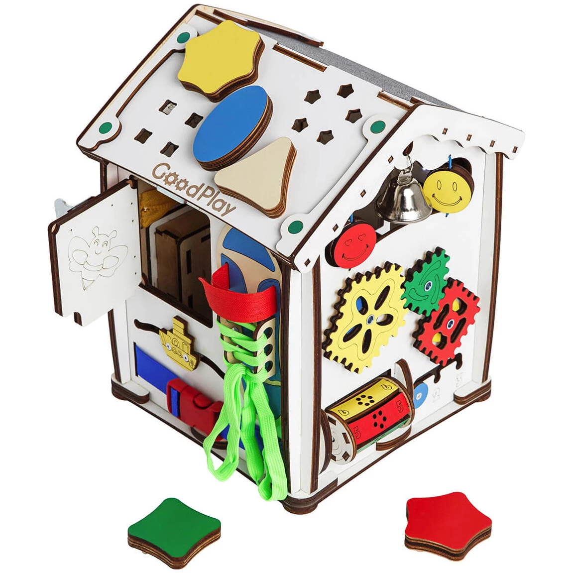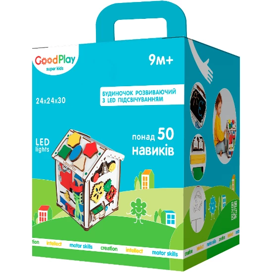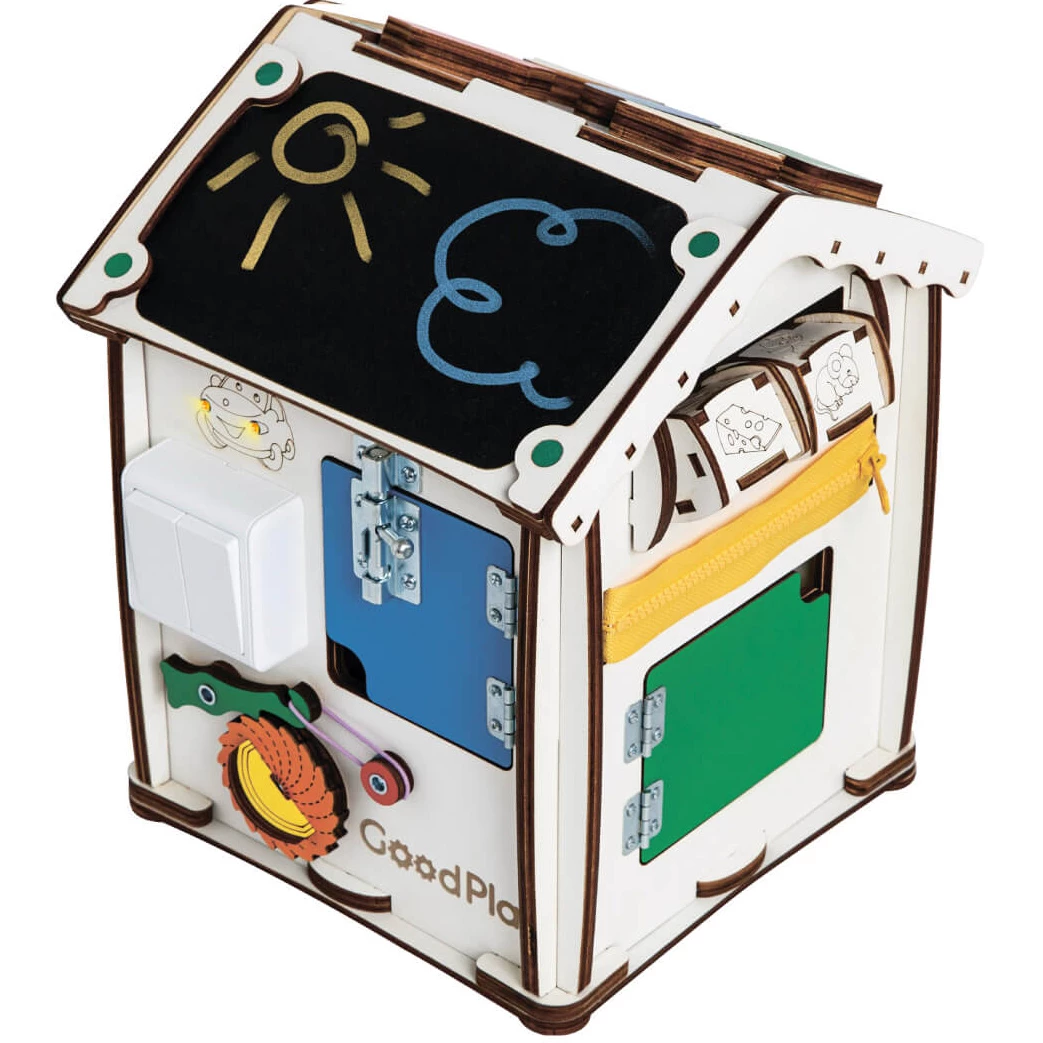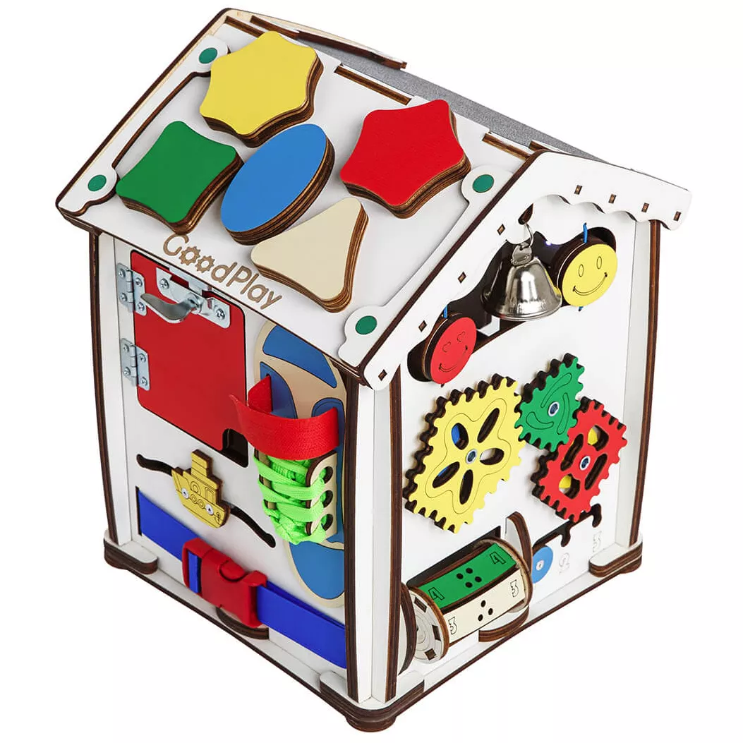 Ігровий бізіхаус розроблений дизайнерами, дитячими педагогами і психологами і стане відмінним розвиваючим центром для дитини. Будиночок зроблений з екологічних матеріалів, края відшліфовані, всі деталі добре закріплені. Під час гри, діти вчаться взаємодіяти з повсякденними предметами, вивчають букви, цифри і кольори.