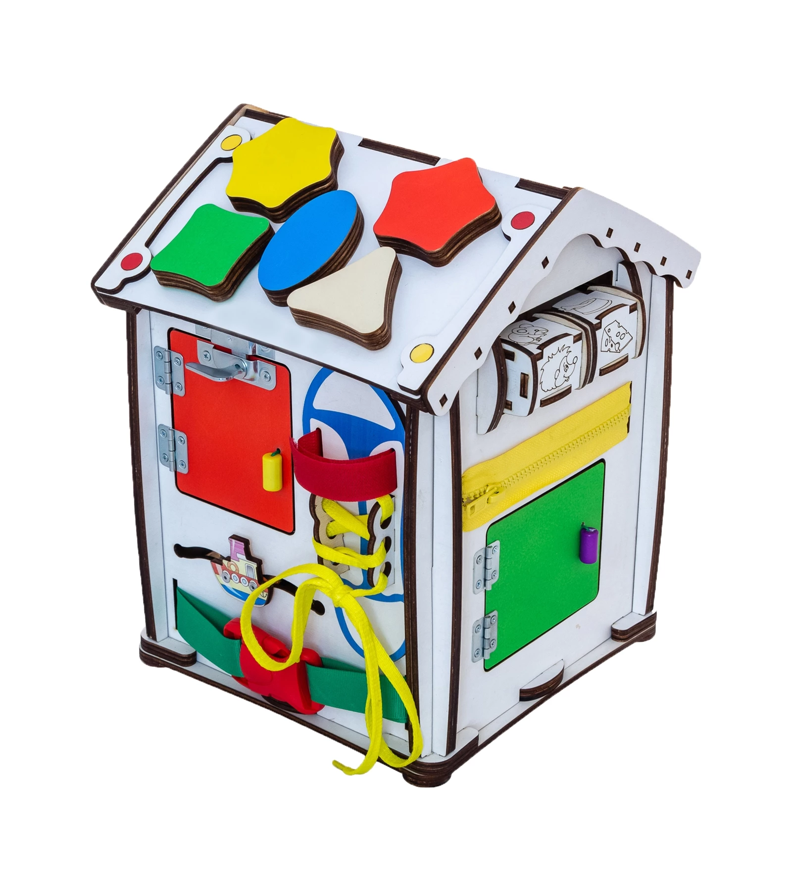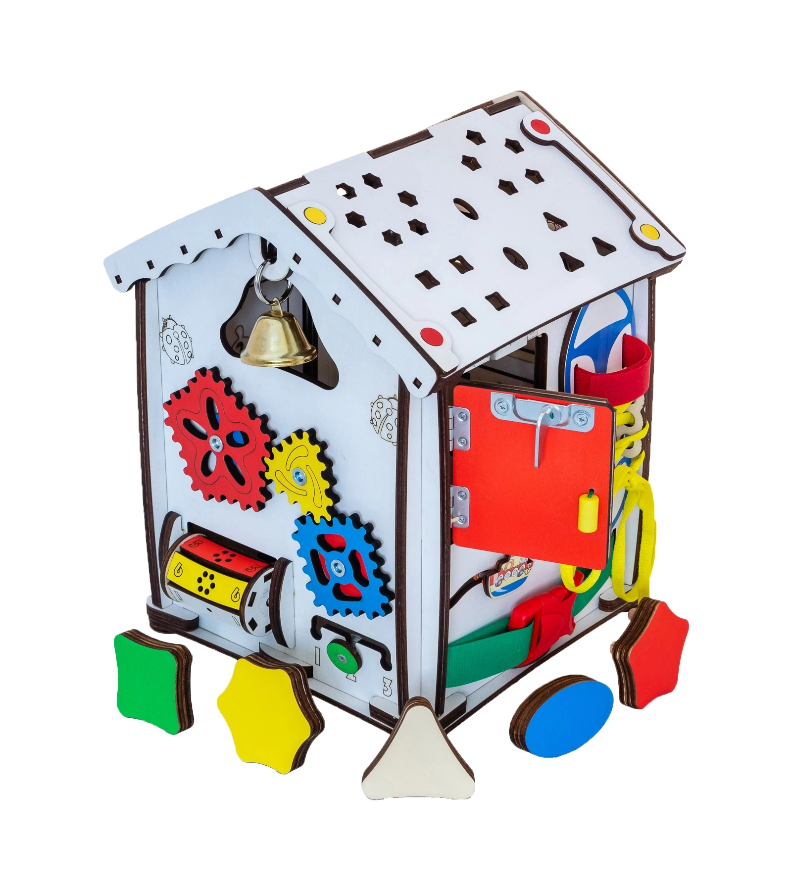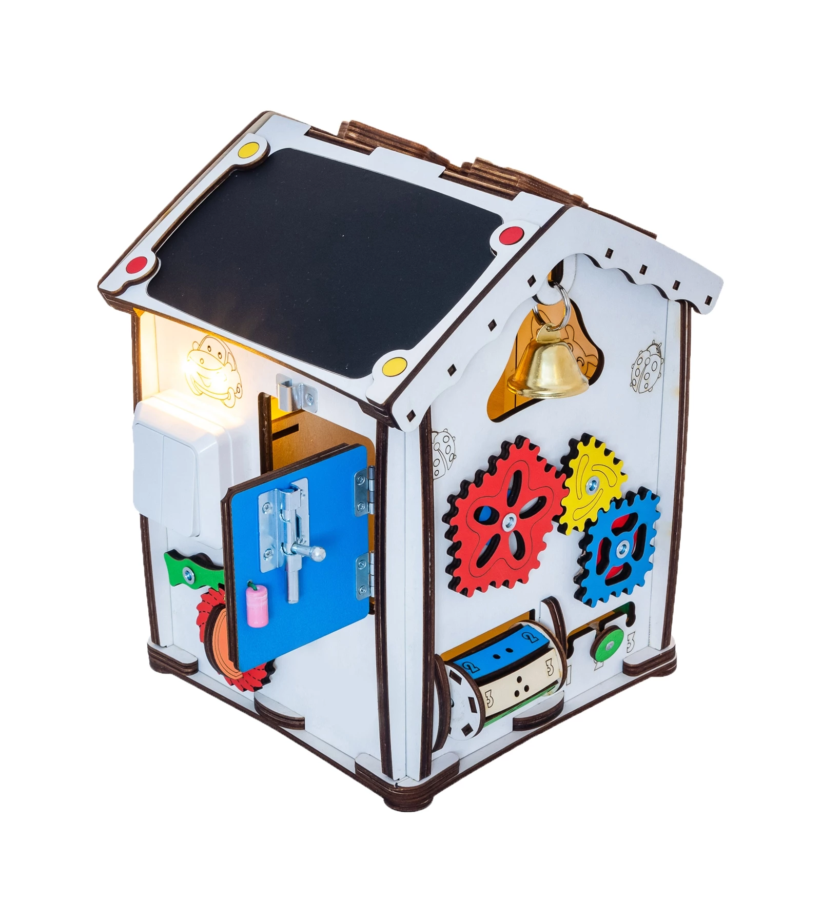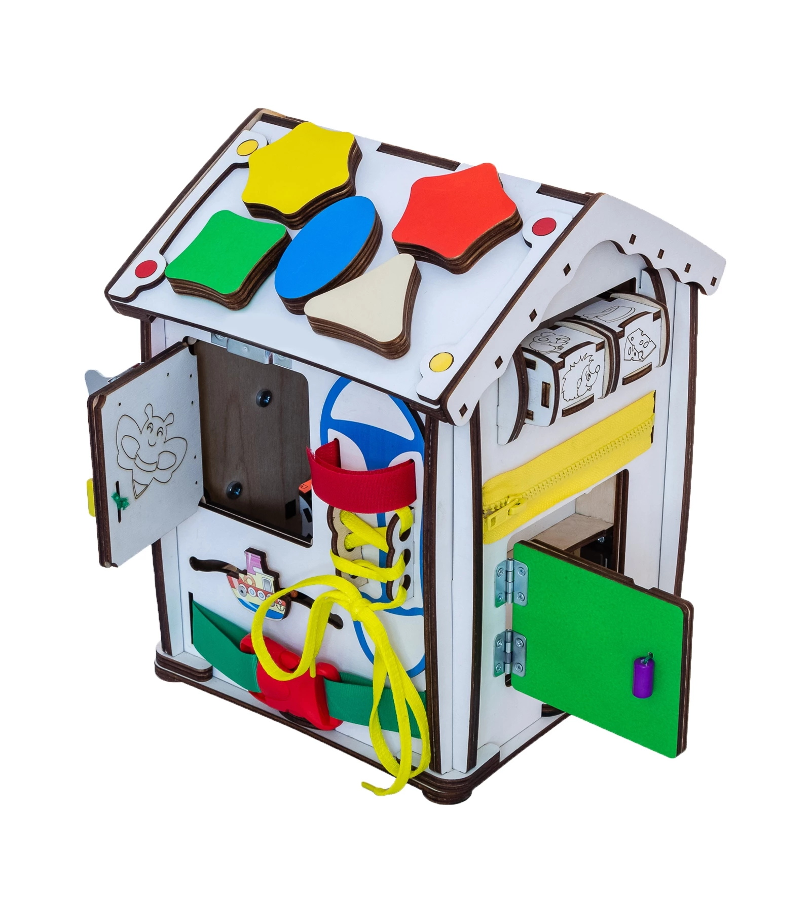 Ігровий бізіхаус розроблений дизайнерами, дитячими педагогами і психологами і стане відмінним розвиваючим центром для дитини. Будиночок зроблений з екологічних матеріалів, края відшліфовані, всі деталі добре закріплені. Під час гри, діти вчаться взаємодіяти з повсякденними предметами, вивчають букви, цифри і кольори.