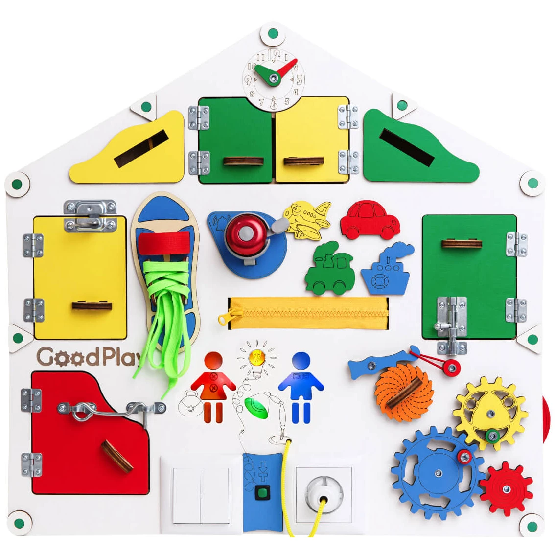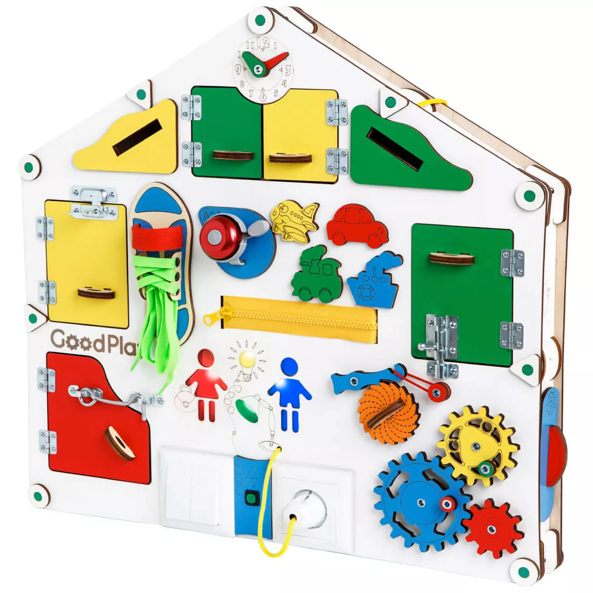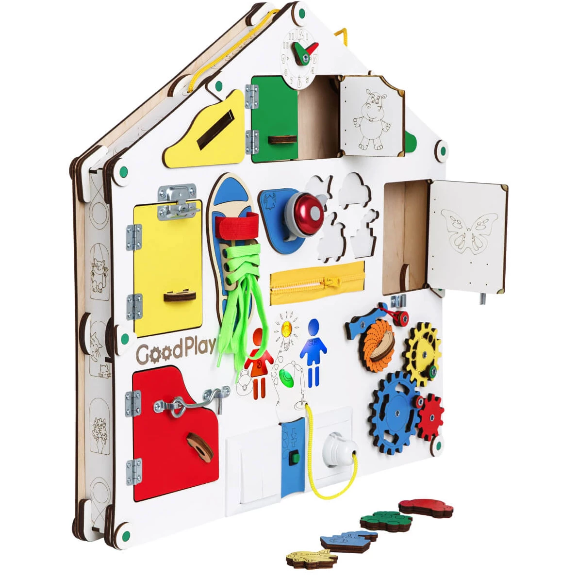 Розвиваюча дошка і зручний ігровий центр. Бізідошка не займає багато місця, її можна прикріпити до стіни.