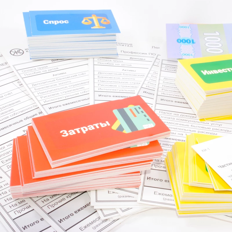 Ця настільна гра не тільки скрасить ваше проведення часу з друзями, але і допоможе вам змінити мислення і набути нових навичок і фінансову грамотність. Бізнес гра Кеш Флоу адаптована під наші реалії і український менталітет. Правила дуже прості і зрозумілі. Потрібно проаналізувати свої відносини з грошима. Це і депозити, і кредити, і фінансова подушка безпеки, і накопичення. В ході гри кожен гравець отримує діючі інструменти і покрокову інструкцію, яка допоможе вам розпоряджатися своїми фінансами. Під час гри, гравець купує цінні папери, нерухомість, малий або великий бізнес. У грі змодельовані всі життєві ситуації. Народження дітей, спадок, проблеми зі здоров'ям, звільнення, день народження колег, домашні вихованці, інфляція і т.д.