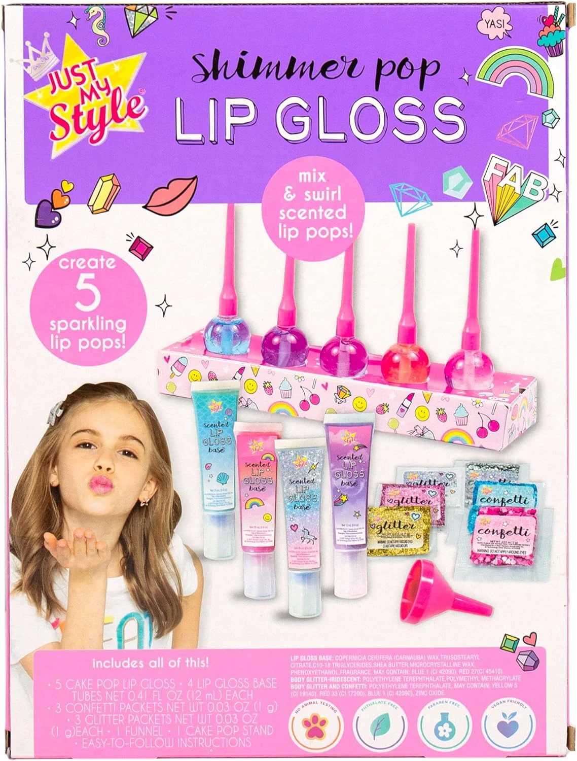 Дотримуйтесь простих інструкцій, щоб дізнатися, як відміряти та змішувати інгредієнти – це простіше простого! Як тільки ви приготуєте власні фірмові суміші, наповніть кожну баночку блиску для губ своїм унікальним рецептом за допомогою лійки для меншого безладу і не забудьте додати блискітки і конфетті.