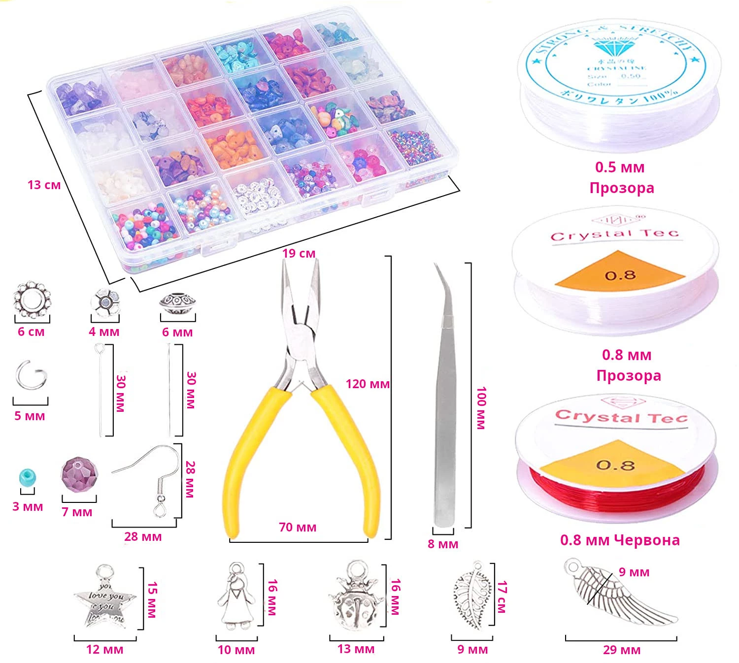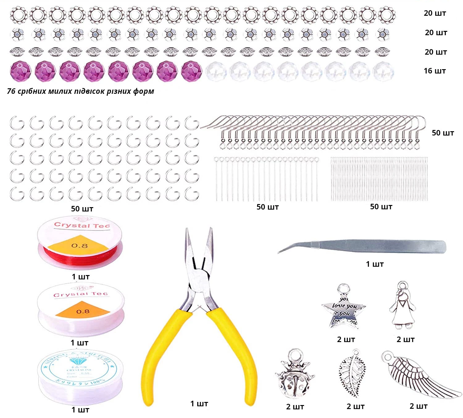 - Розпірні намистини у 4-х стилях (76 шт).