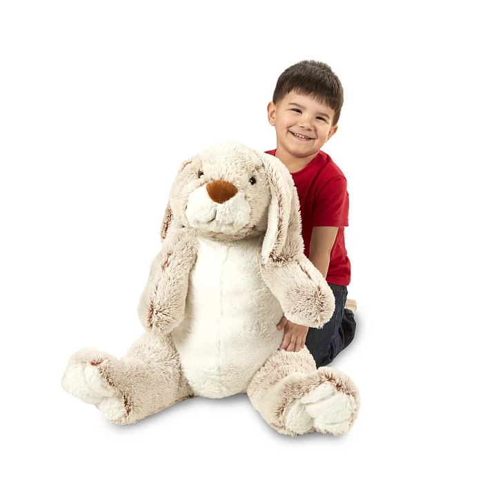 Знайомтесь, кролик Джамбо! Це чудове плюшеве звірятко з величезним задоволенням стане найкращим другом для вашої дитини. У милого плюшевого кролика м'яка, приємна на дотик шерсть і такий самий м'який наповнювач. Все це робить іграшку від Melissa & Doug ідеальним об'єктом для пестощів та обіймів. Виготовлений із якісних матеріалів виріб прослужить своєму власнику не один рік. Двоколірний кролик має висоту 21 см і ширину близько 20 см. У тварини мила мордочка, довгі вушка і пухнасті лапки. Використовувати таку іграшку можна не тільки для ігор, але й для прикраси інтер'єру дитячої кімнати.