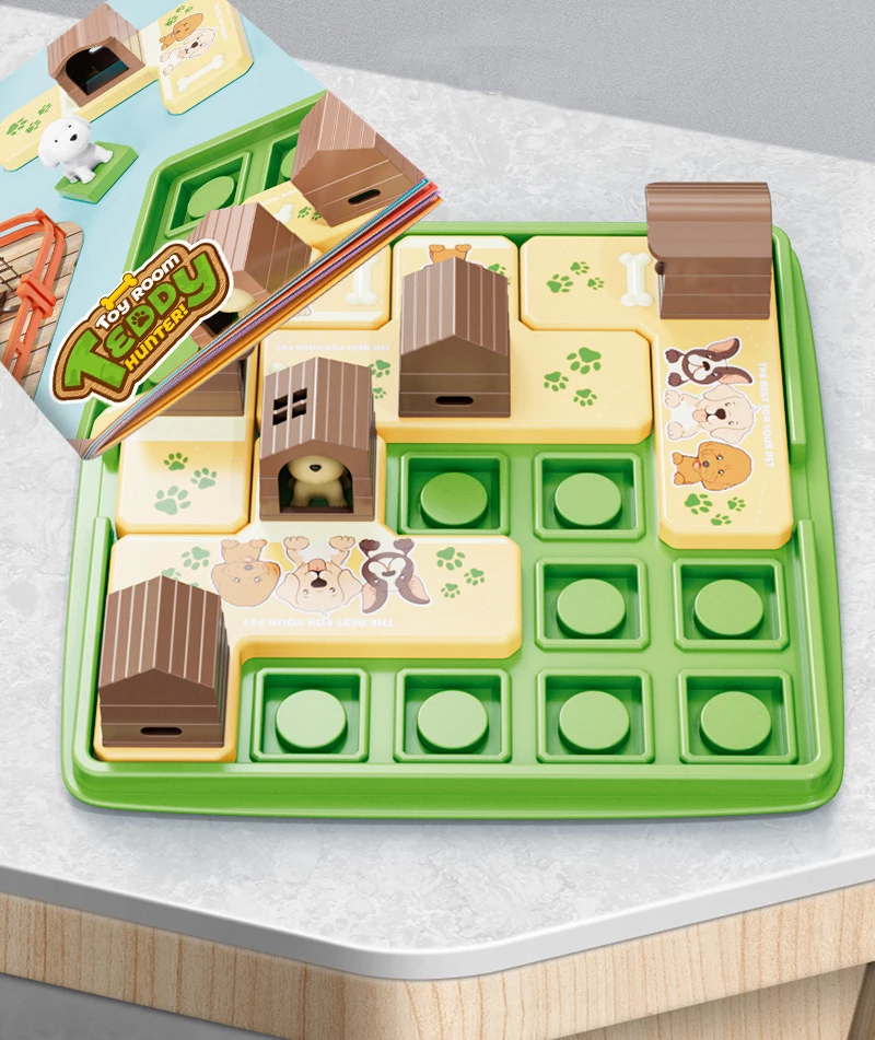 Щоб розпочати гру, виберіть завдання, скориставшись буклетом, що додається. Помістіть на ігрове поле п'ятьох цуценят і 4 частини будиночка так, як це зазначено у вибраному вами завданні. Не має значення, в яку сторону будуть обернені собачки. Потім почніть переміщати частини будинку одну за одною, поки песики не опиняться кожен у своїй будці. Ви можете обертати деталь та переміщати її куди завгодно. За потреби цуценят можна перемістити в інше місце. Гра закінчується, коли кожен песик опиняється у своїй будці.