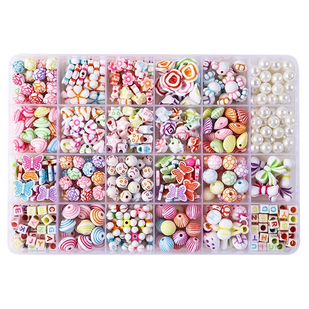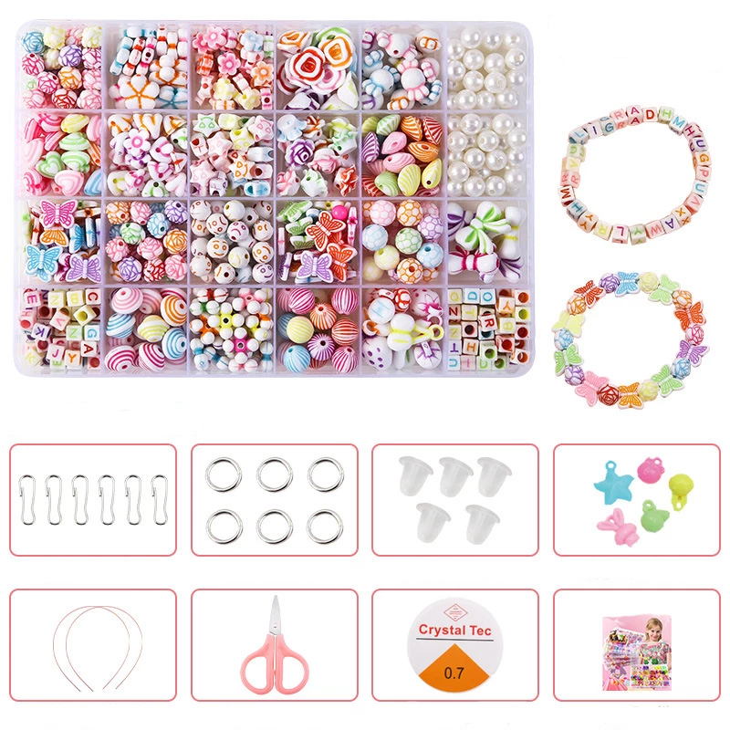 Яскравий набір для творчості - це хороший навчальний інструмент, який може допомогти дітям поліпшити координацію рук і очей, поліпшити практичні навички, поліпшити уяву дитини, тренує творчі здібності та логічне мислення. Цей набір для виготовлення браслетів і обручів своїми руками включає в себе 24 різних види намистин різних кольорів і форм, таких як: літери, алфавіт, зірки, серця, квіти, круглі, диски і т. Д. Акрилові намистини з великими отворами, тому дитина зможе легко протягнути через них мотузку.