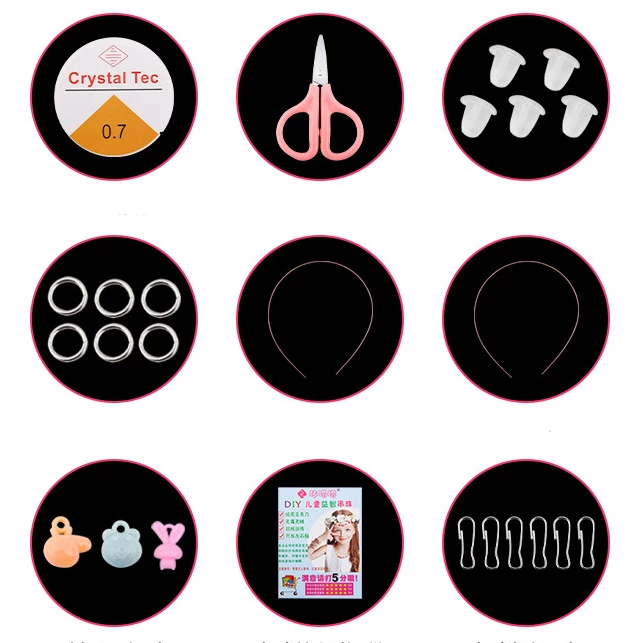 Набір поставляється в красивому прозорому пластиковому контейнері для зберігання з 24 відділеннями для зберігання різнокольорових намистин. Завдяки цьому дуже зручно знаходити саме ті намистини, які потрібні вам для створення аксесуара. Ще в наборі є нитка, яка представляє собою еластичну мотузку (10 метрів), і різні аксесуарами для виготовлення прикрас.